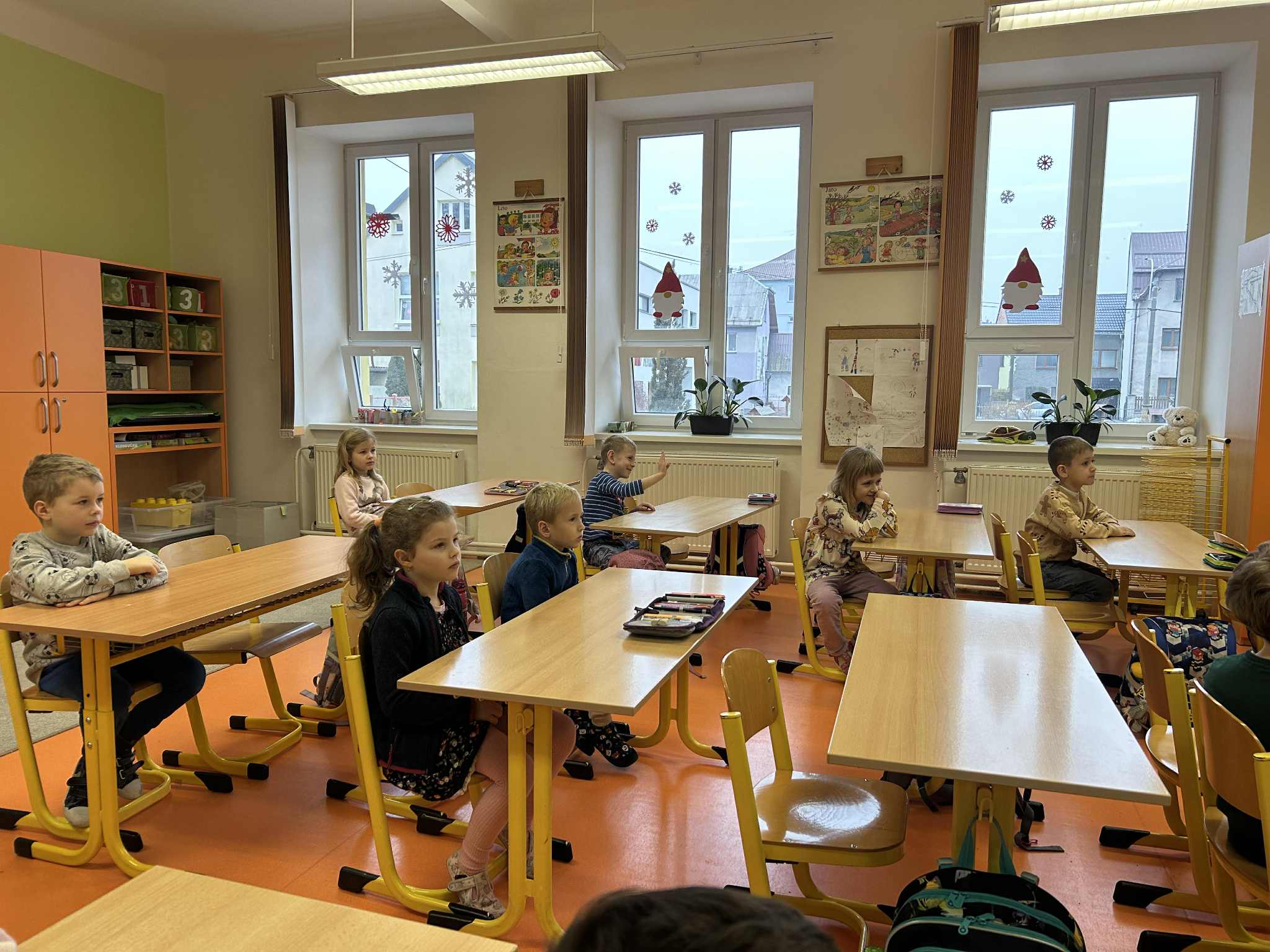 V lednu jsme s dětmi navštívili Základní školu v Petřkovicích, kde jsme se setkali s prvňáčky, které velmi dobře známe – ještě nedávno totiž navštěvovali naši mateřskou školu. O to větší radost jsme měli z milého a přátelského setkání. Děti si mohly vyzkoušet, jaké to je být skutečným školákem. Seděly v lavicích, zkoušely si psát a kreslit, zapojily se do běžné výuky. Pro mnohé z nich to byl první opravdový „školní“ zážitek, který je velmi zaujal a motivoval. Setkání s kamarády, kteří už do školy chodí, bylo pro naše děti velkým povzbuzením. Viděly, že školu zvládají, že se tam učí spoustu zajímavých věcí a že se nemusí ničeho bát. Celá návštěva proběhla v příjemné a přátelské atmosféře. Děkujeme ZŠ Petřkovice za milé přijetí a možnost nahlédnout do školního prostředí. Pro děti to byl krásný a důležitý krok v přípravě na jejich budoucí nástup do první třídy.