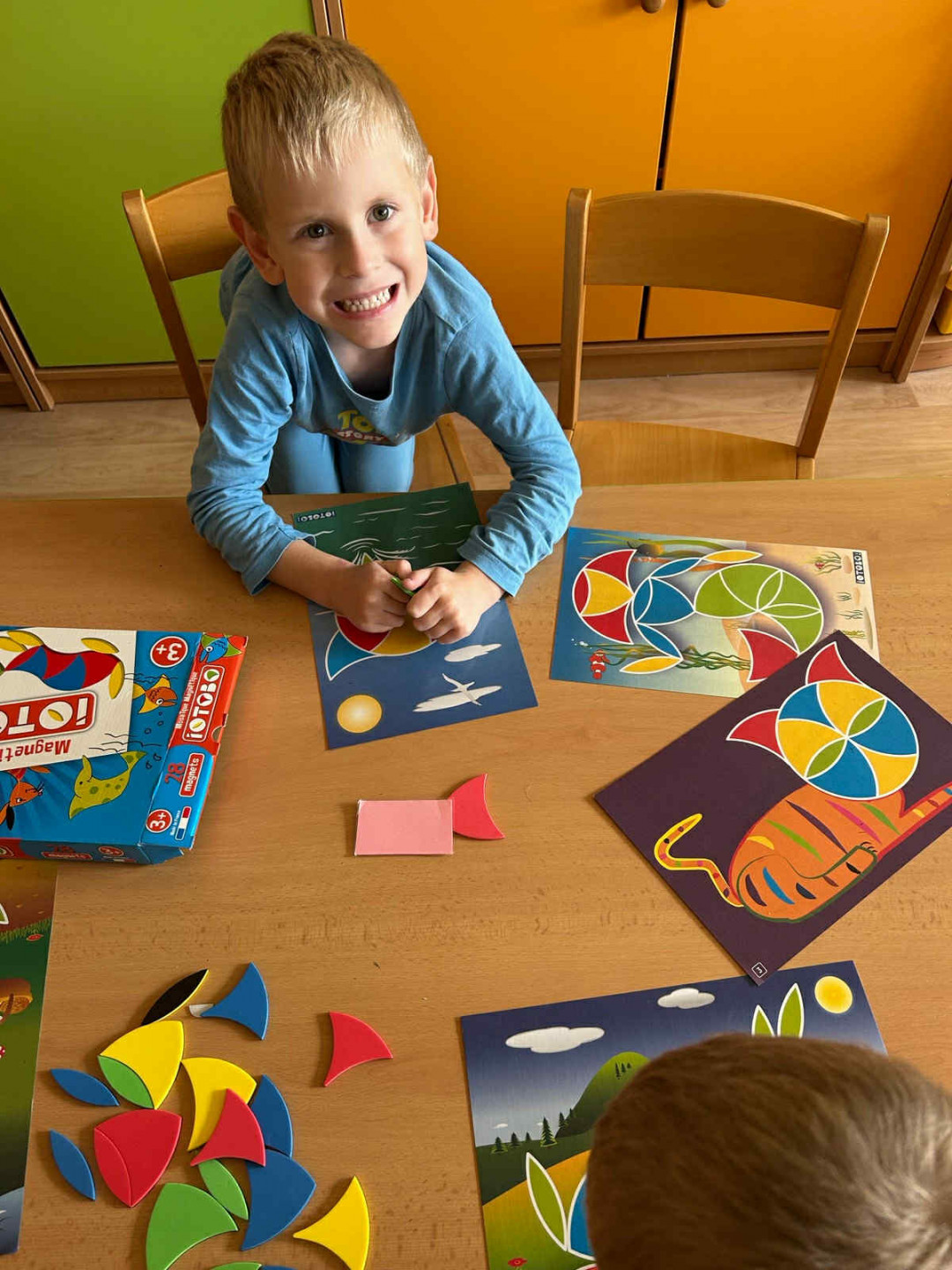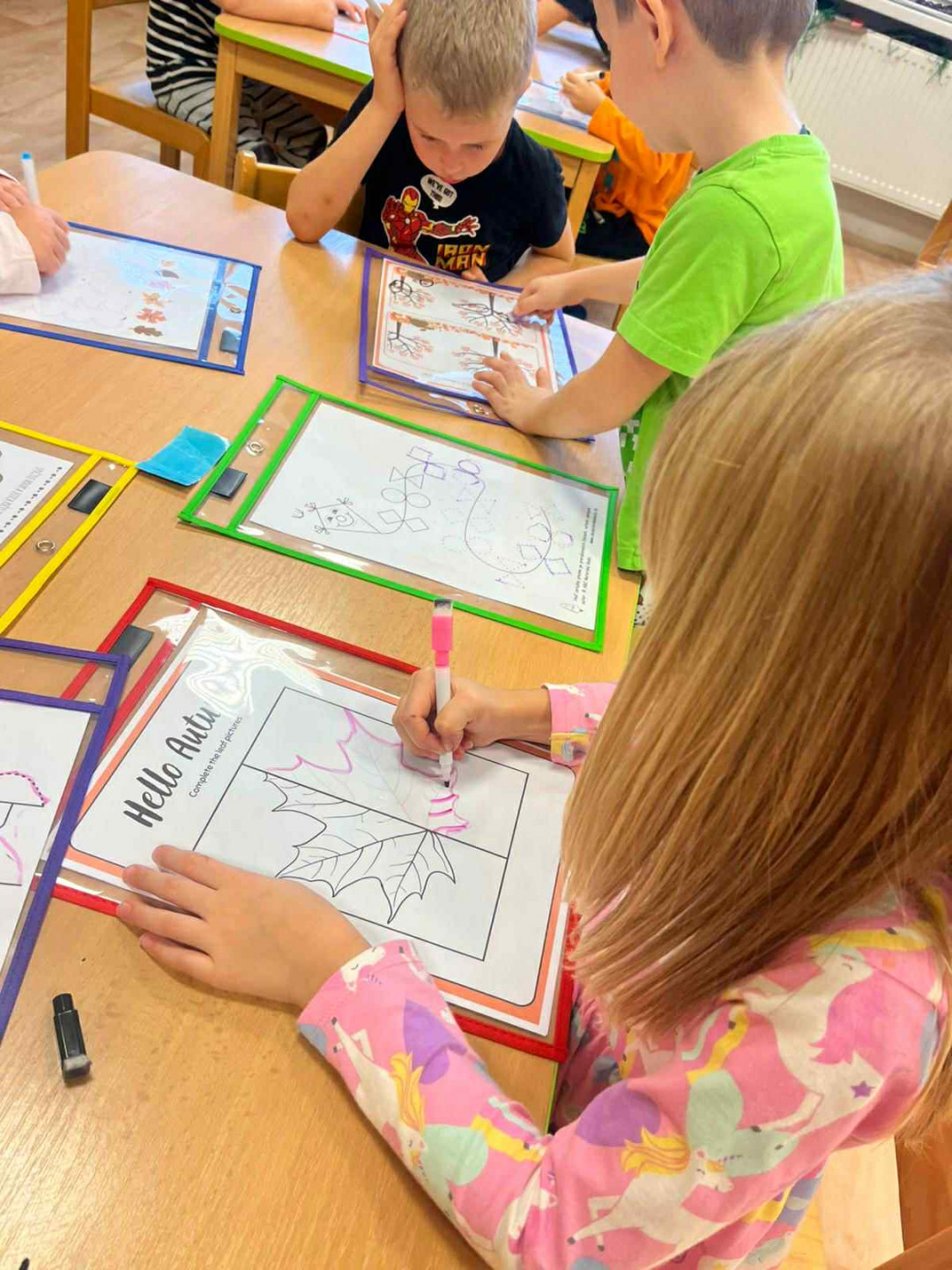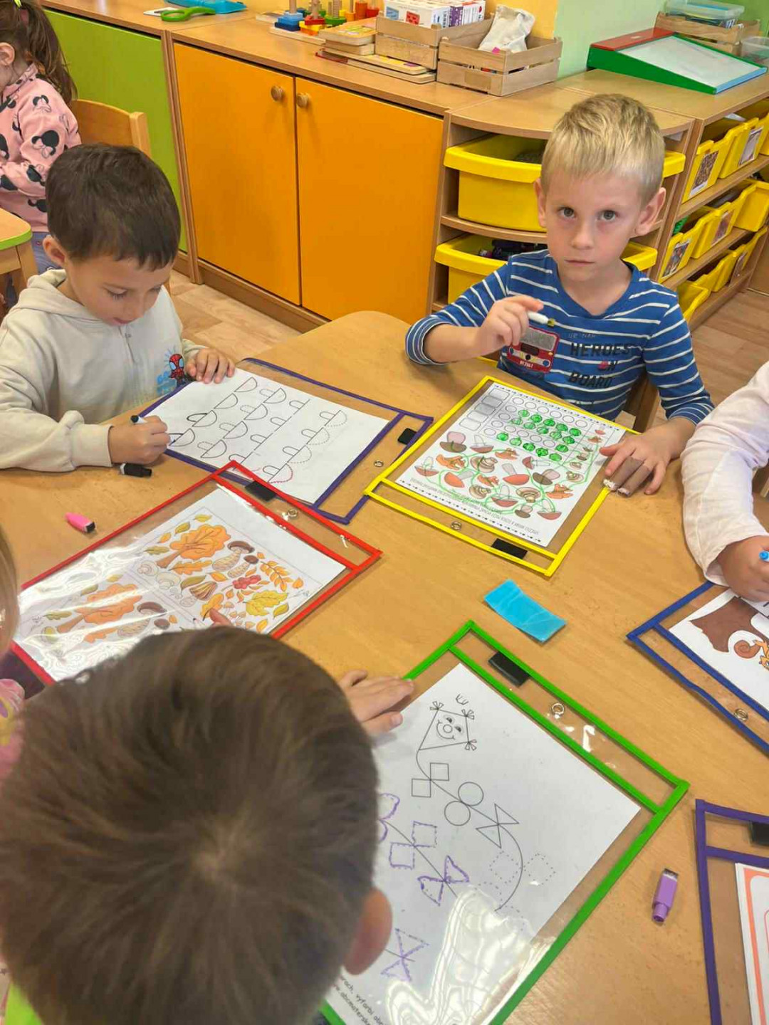 Společně procvičujeme grafomotoriku, soustředění i spolupráci při společných úkolech. Děti se učí vzájemně pomáhat, naslouchat si a užívat si radost z tvoření i z dobře odvedené práce. Každý den uděláme malý krůček blíž k tomu, aby z našich šikovných dětí byli sebevědomí školáci, kteří se na zápis i do školy už moc těší!