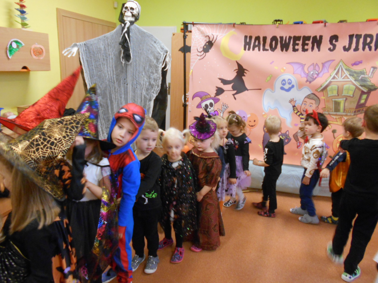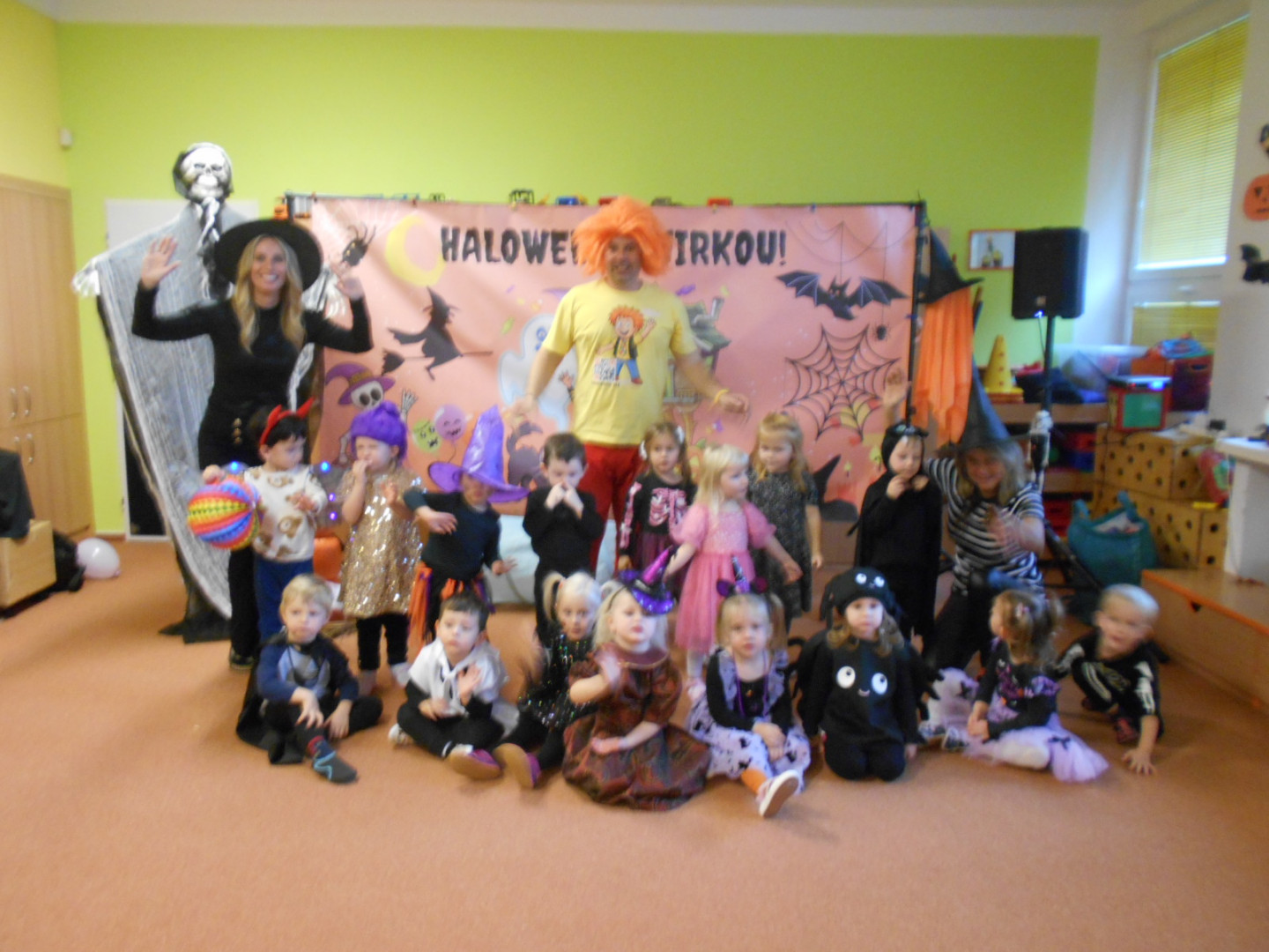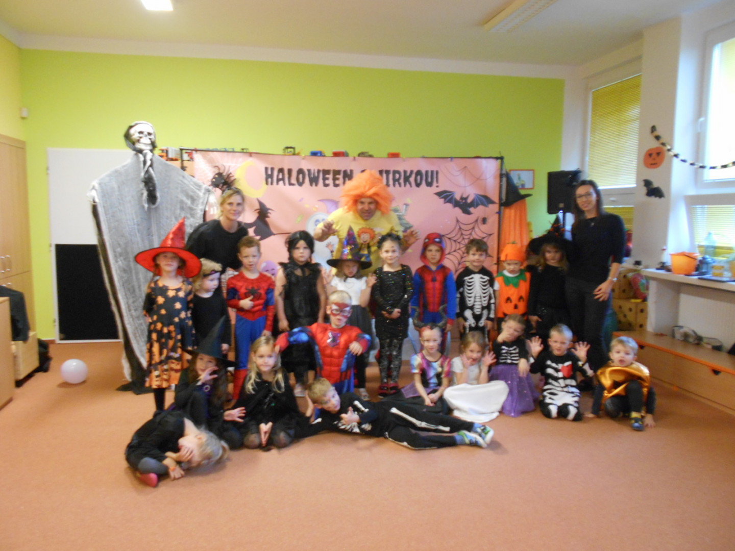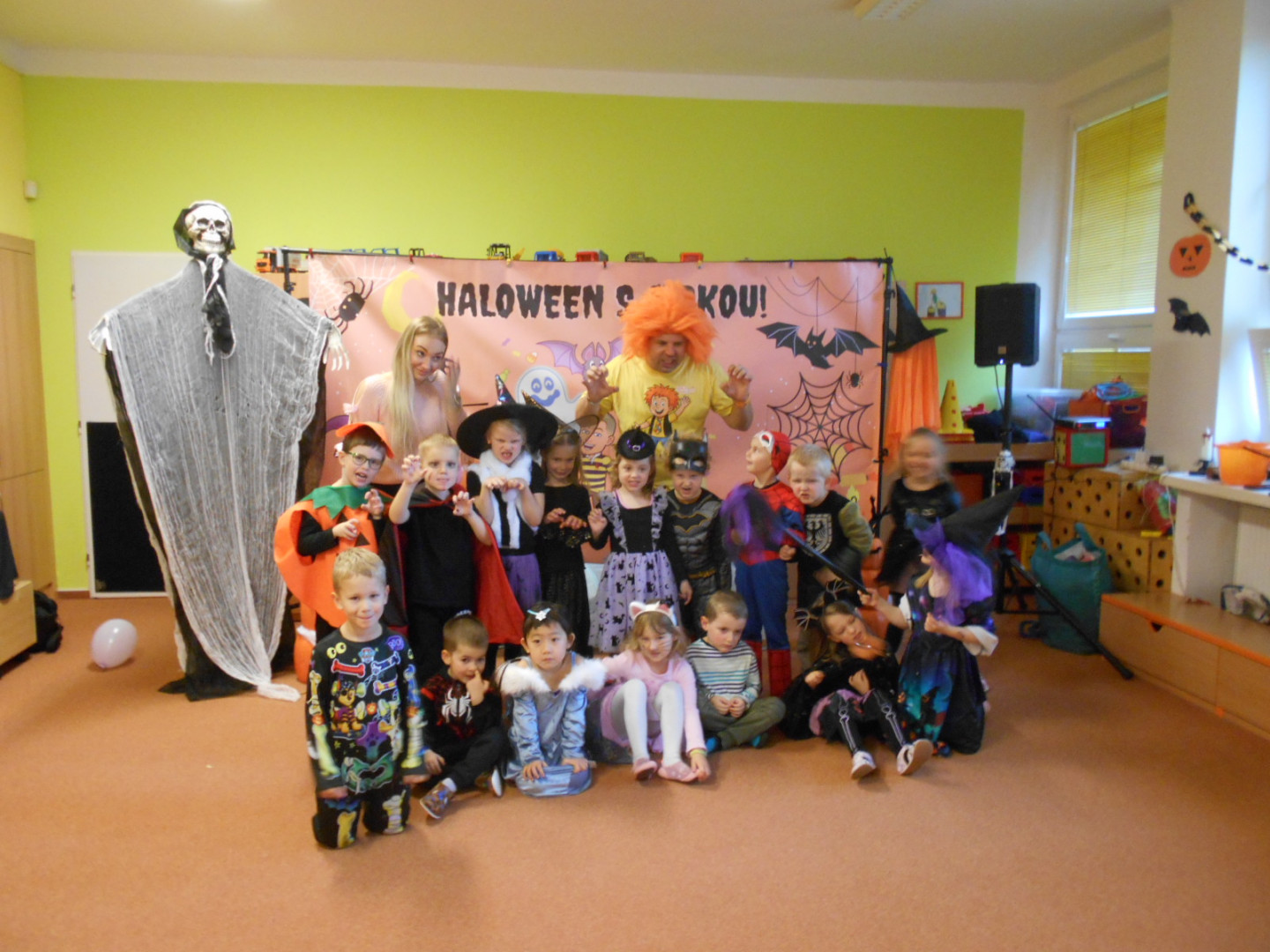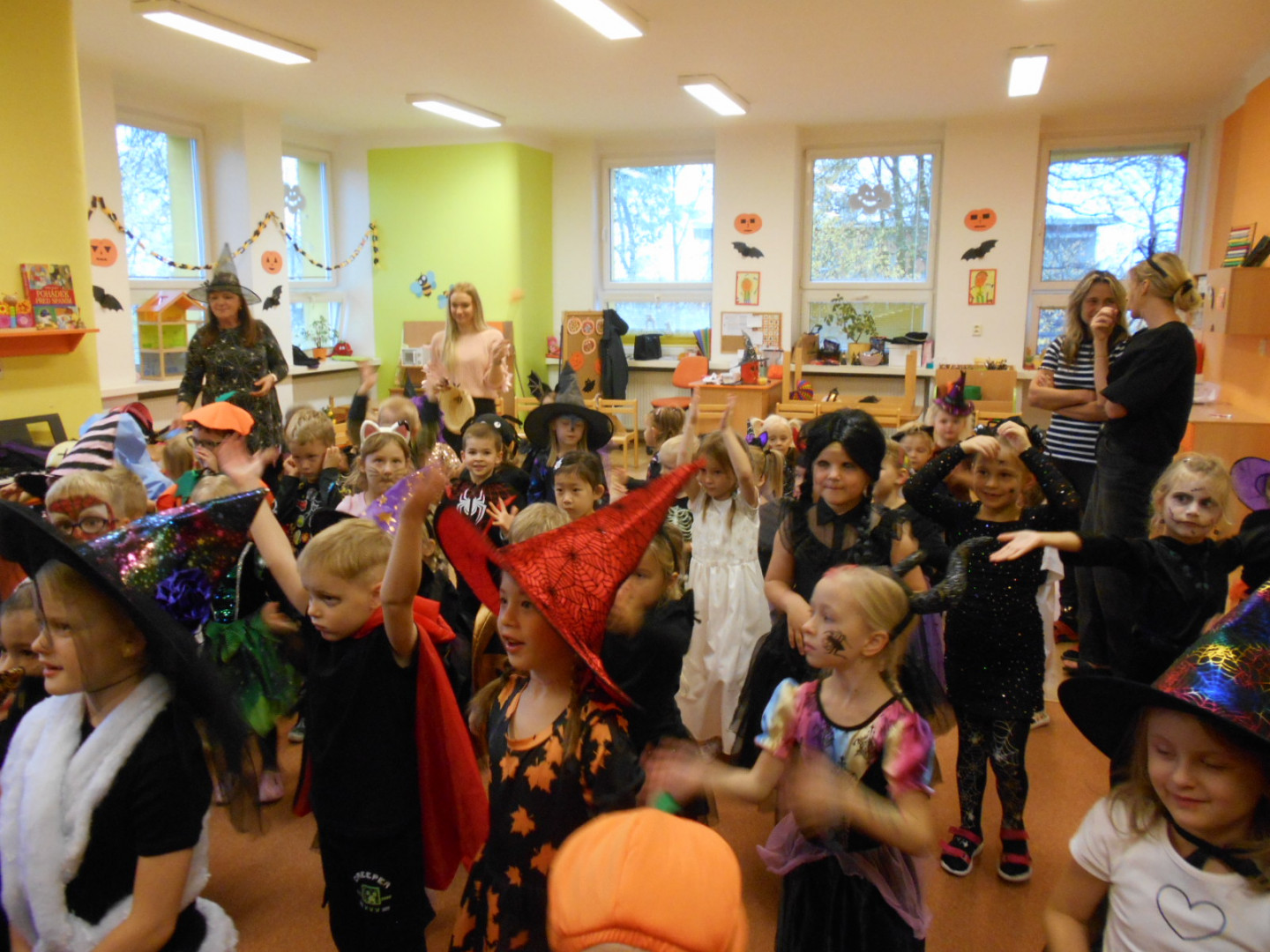 V pondělí 3.11.2025 jsme s dětmi oslavili svátek všech duchů a strašidel se zábavným programem moderátora Jirky Prokeše. Pro děti byl přichystán interaktivní program plný her, soutěží a tanců. Zábavu si děti náramně užily, a nakonec nás čekala odměna a sladké občerstvení na třídách, které si děti ráno přichystaly.