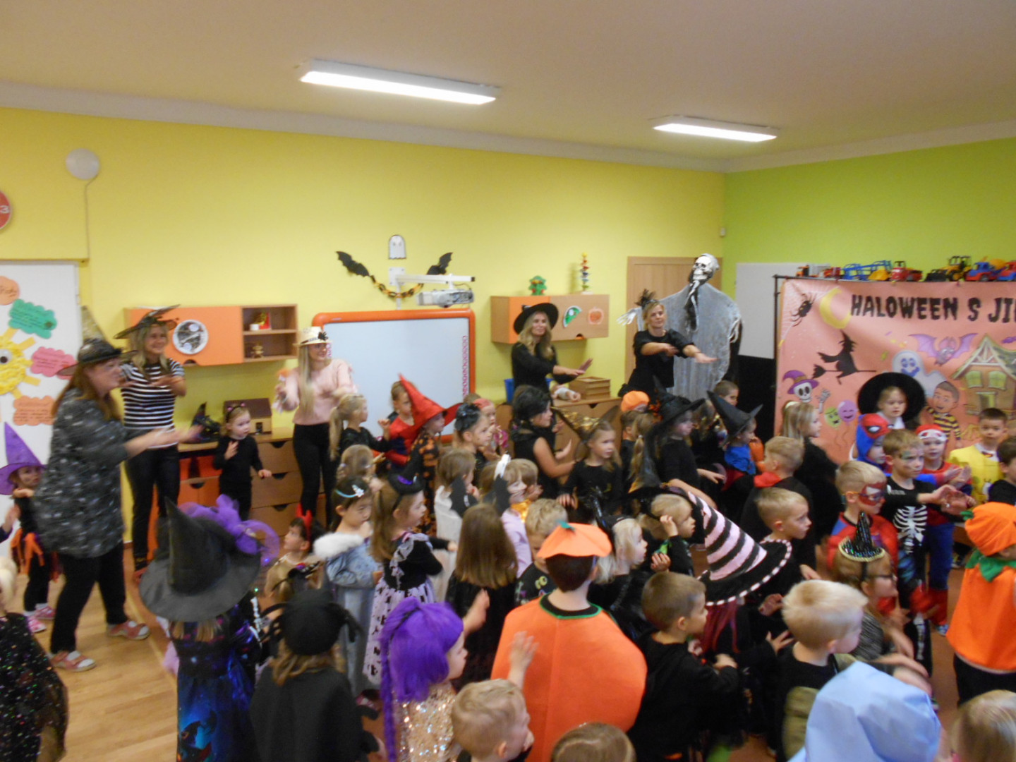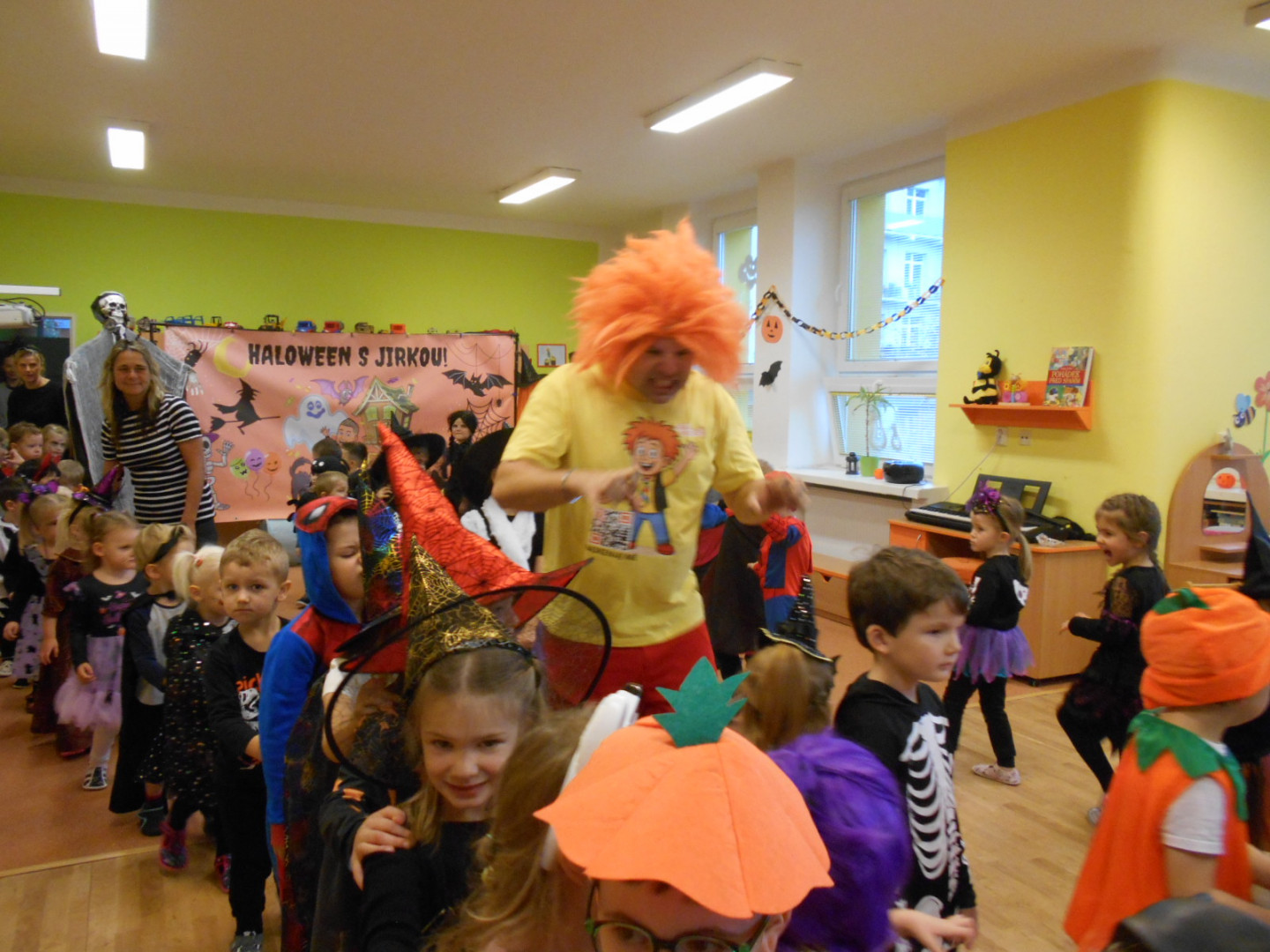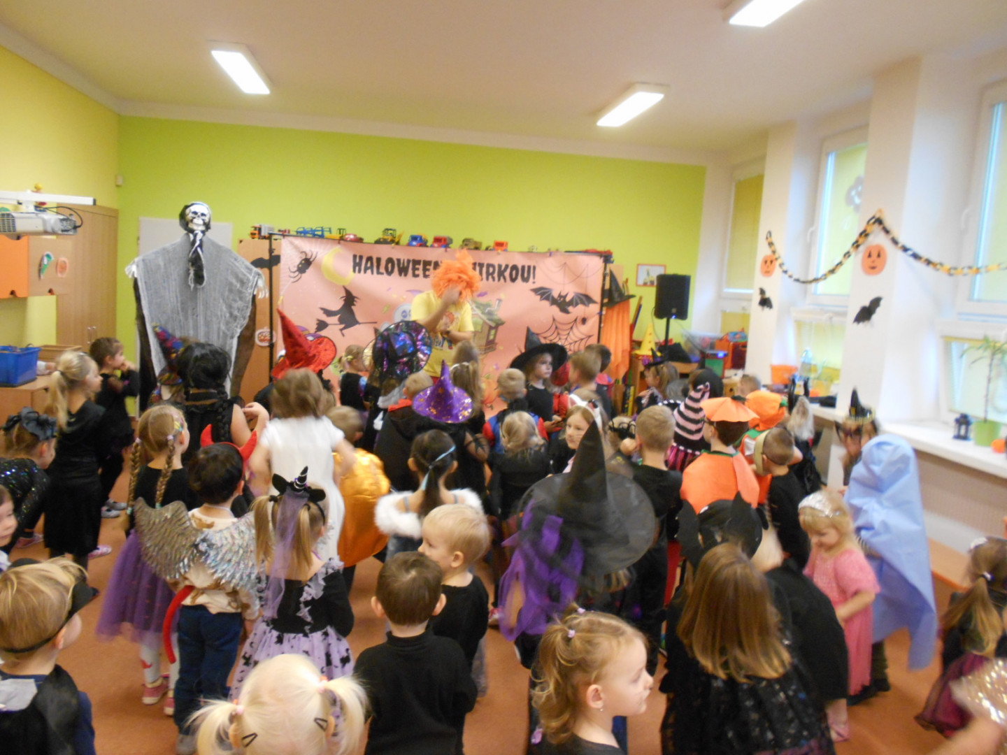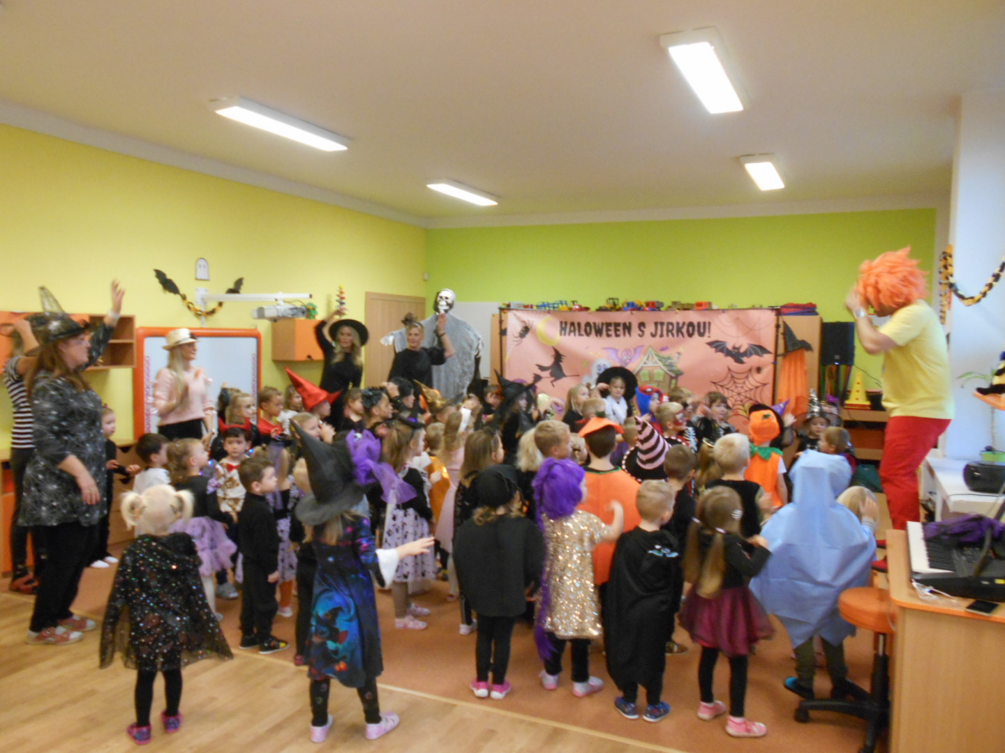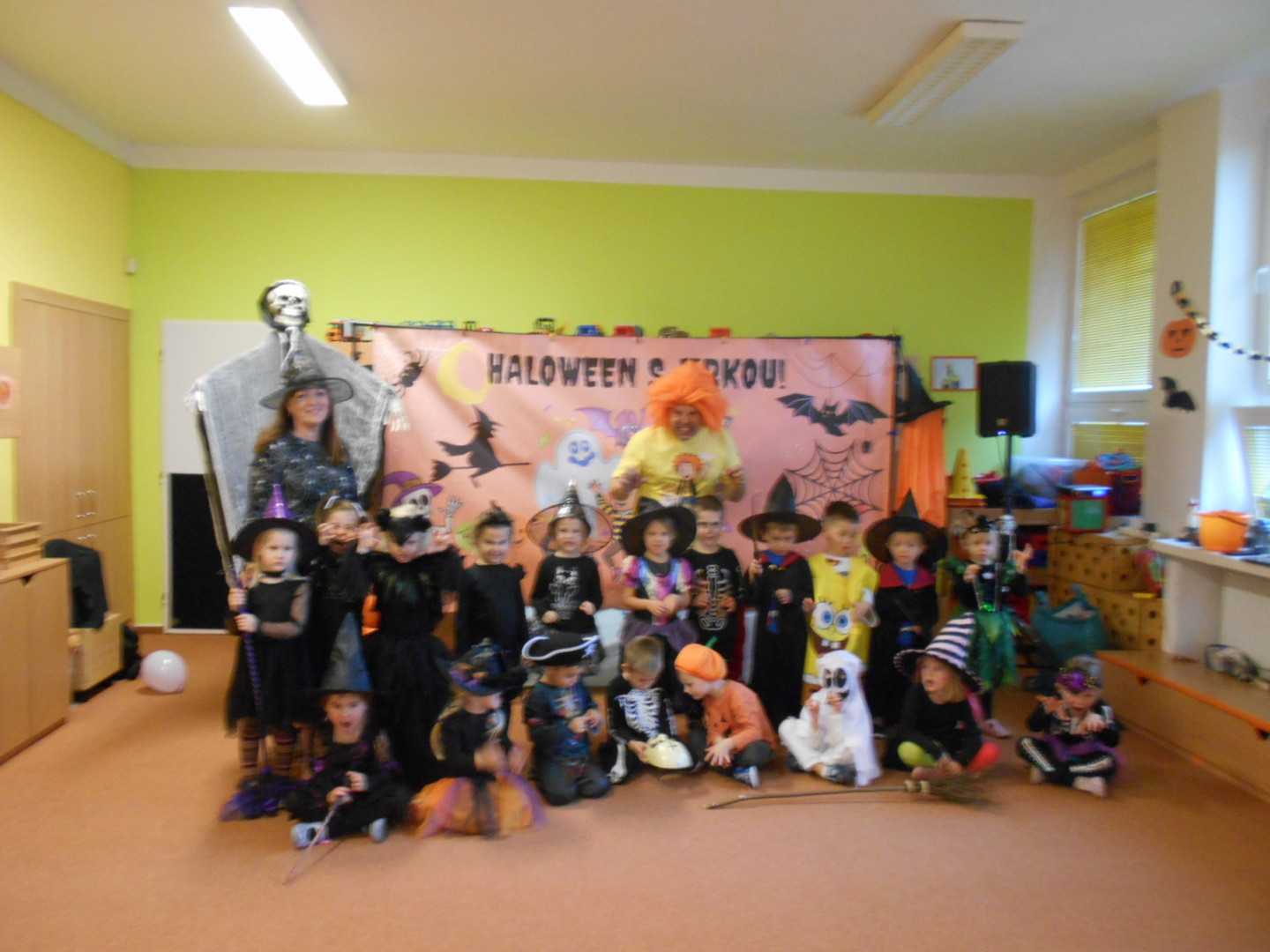 V pondělí 3.11.2025 jsme s dětmi oslavili svátek všech duchů a strašidel se zábavným programem moderátora Jirky Prokeše. Pro děti byl přichystán interaktivní program plný her, soutěží a tanců. Zábavu si děti náramně užily, a nakonec nás čekala odměna a sladké občerstvení na třídách, které si děti ráno přichystaly.