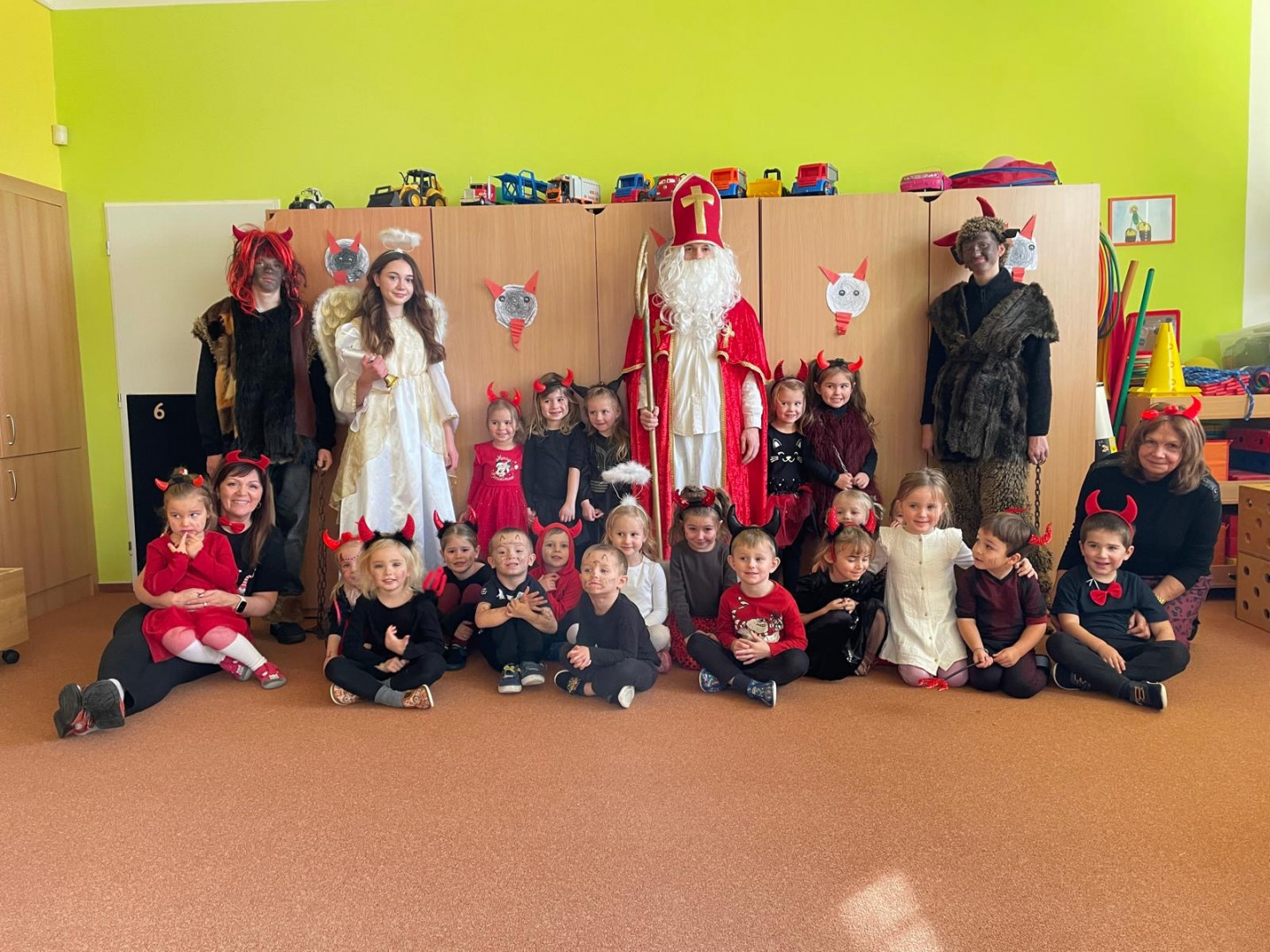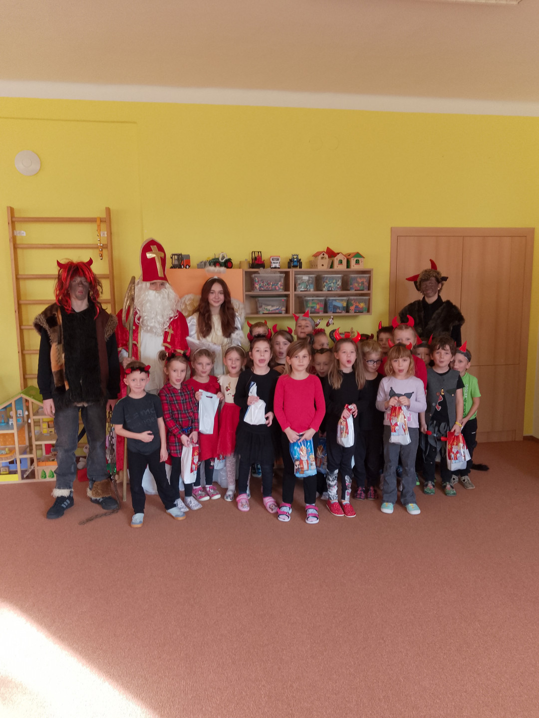 Dnes dopoledne k nám do školky zavítal Mikuláš, a tentokrát nepřišel sám. Doprovázeli ho také čerti a anděl, kteří společně vytvořili krásnou předvánoční atmosféru.Děti byly nadšené – některé s úžasem, některé s trochou ostychu, ale nakonec všichni s úsměvem. Zazpívaly písničky, přednesly básničky a Mikuláš je pochválil za to, jak se po celý rok snažily.Po krátkém povídání přišla očekávaná chvíle: rozdávání nadílky. Čerti trochu zařinčeli řetězy, anděl přinesl klid a Mikuláš předal dětem balíčky plné dobrot.