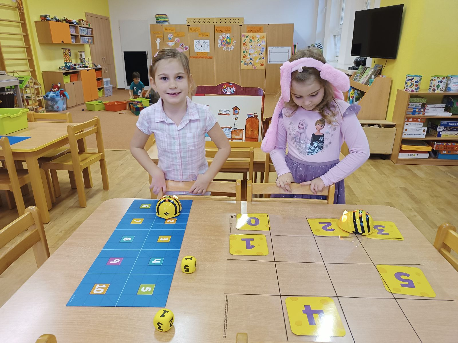 Během měsíce listopadu se děti ze třídy Koťátek seznámily s robotickými hračkami a jejich jednoduchým programováním. Děti byly nadšené a velmi se jim hra s Bee-boty a robotem Alilem líbila. S velkou chutí se pustily do poznávání prostoru – určovaly kam má robot jet – vpravo, vlevo, dopředu, dozadu. Poté již dokázaly robota snadno ovládat. Robot Alilo, jim dokonce za správné naprogramování a trefení cíle zazpíval anglickou písničku.