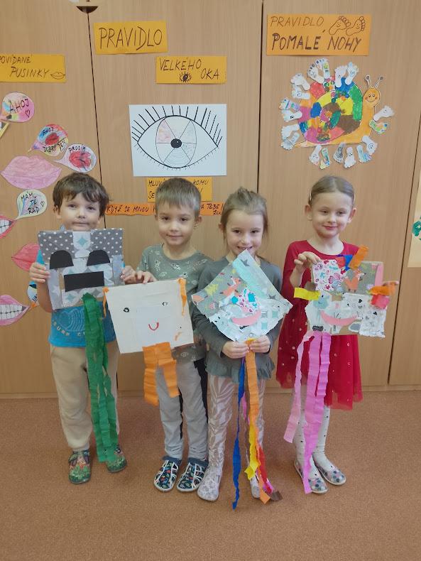 V naší mateřské škole zavoněl podzim nejen venku, ale i v naší třídě Koťátek. Děti se s velkým nadšením pustily do výroby podzimních draků. K práci využily karton, barevné papíry, odstřižky látek, stužky, krepový papír a samozřejmě i svou fantazii. Každý drak byl jiný a jedinečný. Tvoření nebylo jen zábavné, ale také rozvíjelo jemnou motoriku, trpělivost při vystřihování a spolupráci mezi dětmi. Na závěr se děti se svými dráčky proletěly po třídě a zazpívaly si společně písničku Pyšný drak.
