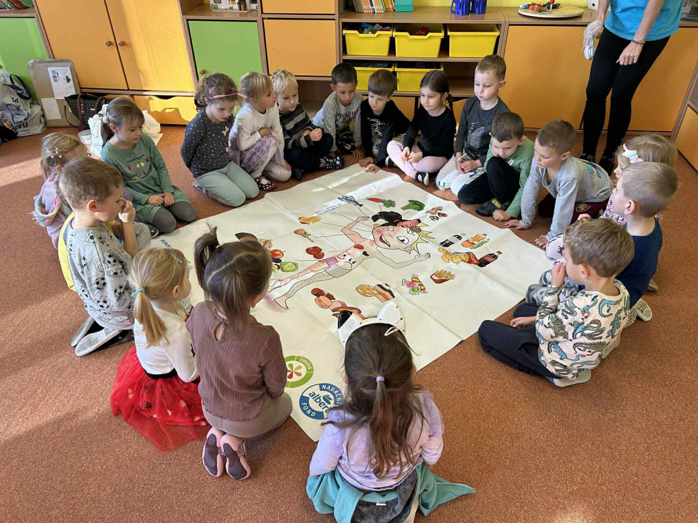 V naší mateřské škole jsme tento týden přivítalive třídě Motýlků a Berušek milou lektorku z programu Zdravá 5, která si pro děti připravila poutavou besedu o zdravém stravování. Děti se během programu hravou formou dozvěděly, proč je důležité jíst ovoce, zeleninu a pestré potraviny, které dodávají tělu energii na celý den. Společně si povídaly o tom, jaké potraviny jsou „kamarádi našeho zdraví“ a které bychom měli jíst jen občas. Nechyběly praktické ukázky, jednoduché úkoly a spousta zvídavých otázek, díky kterým se beseda proměnila v příjemné a zábavné dopoledne.