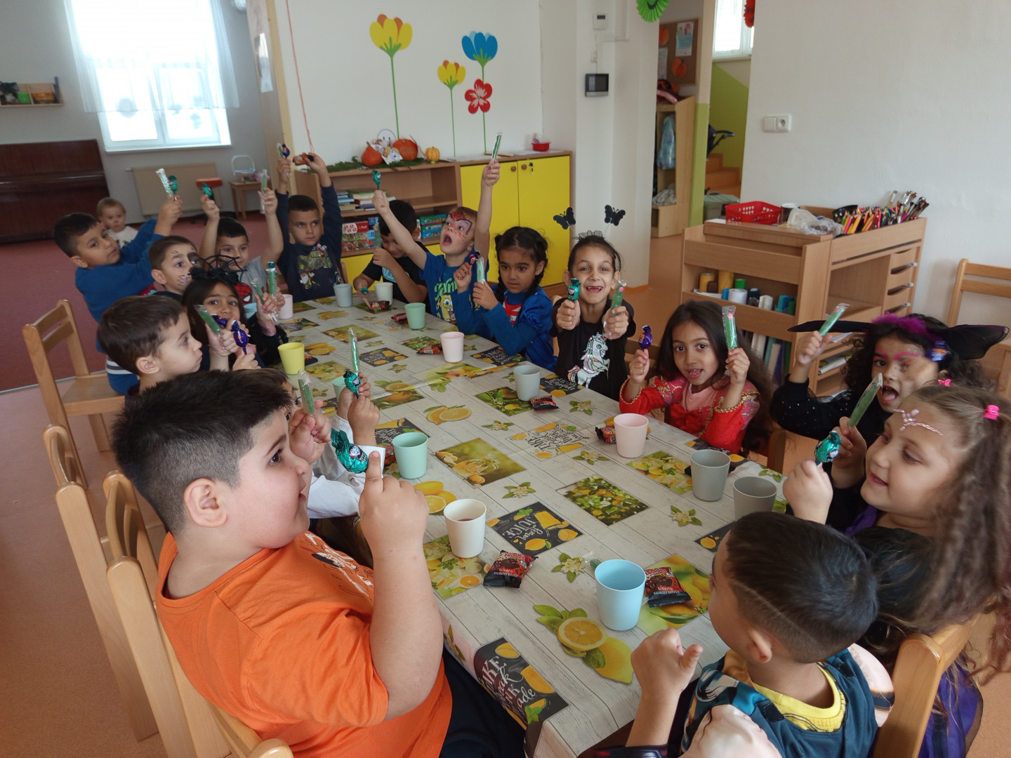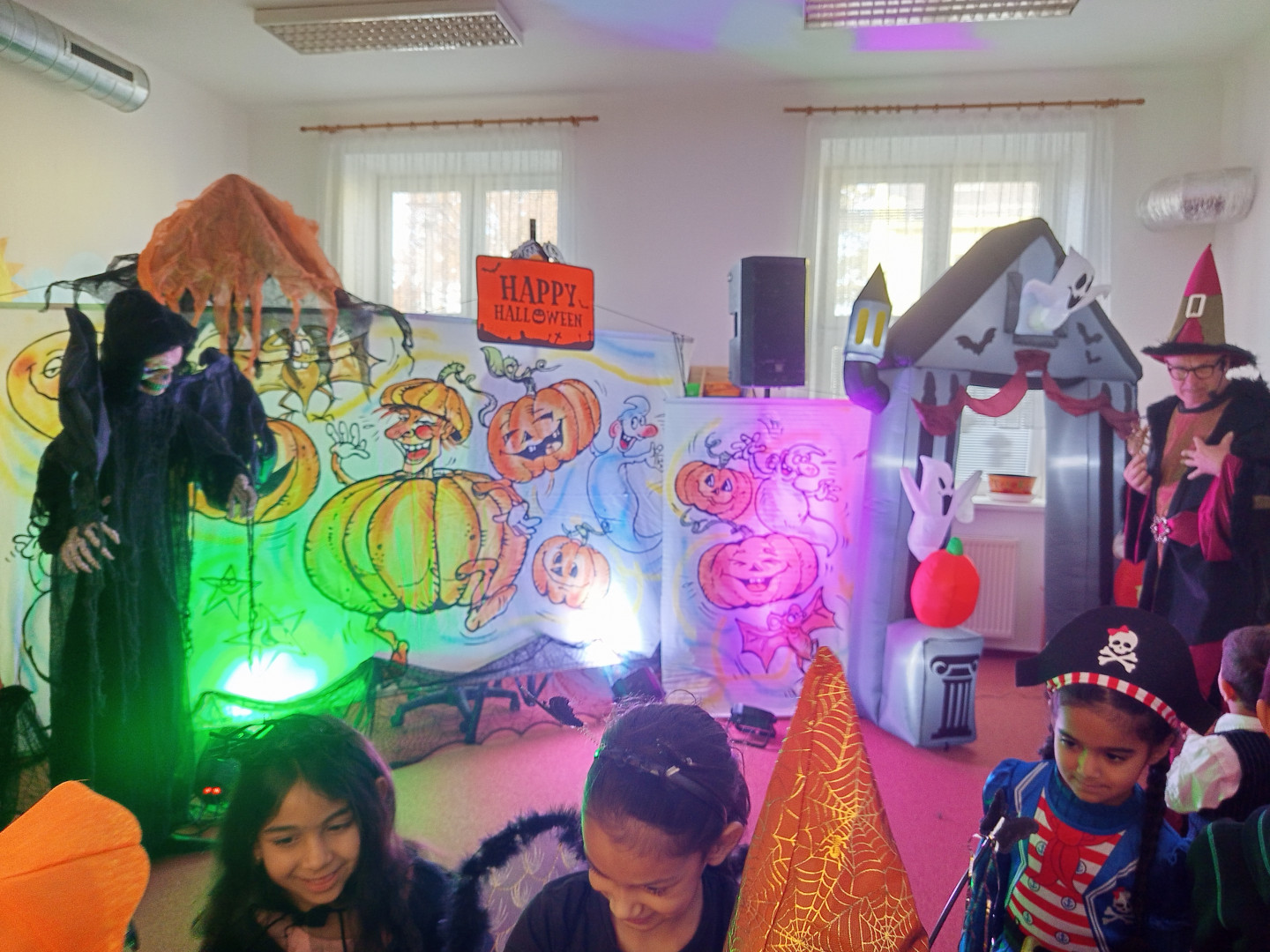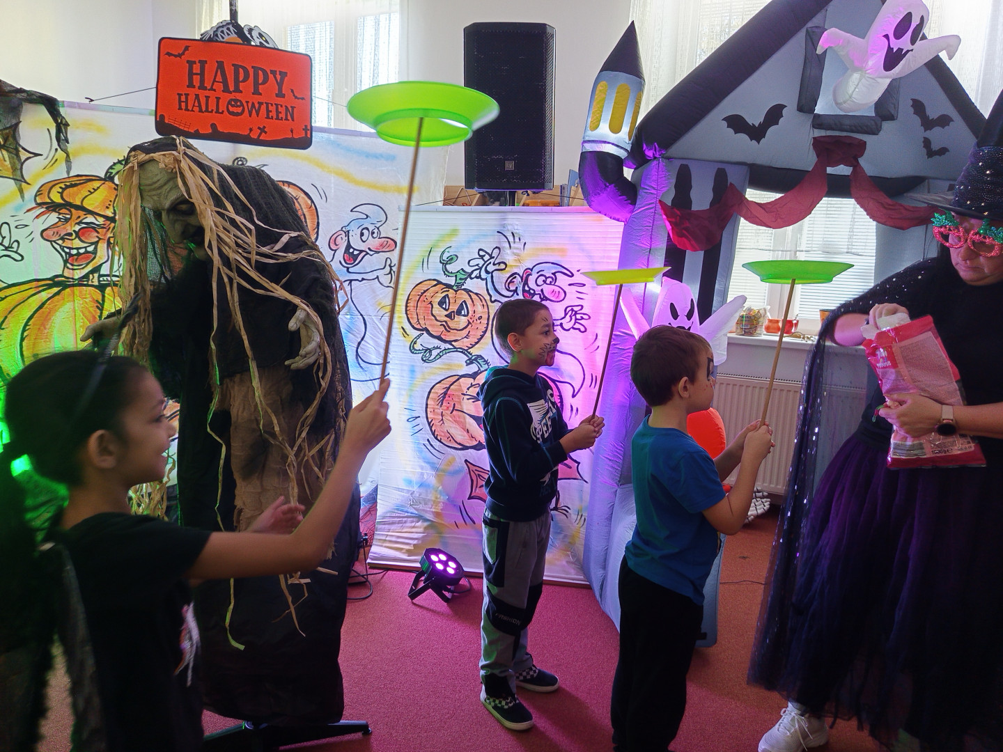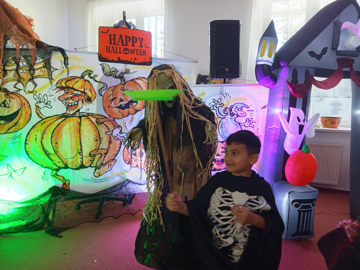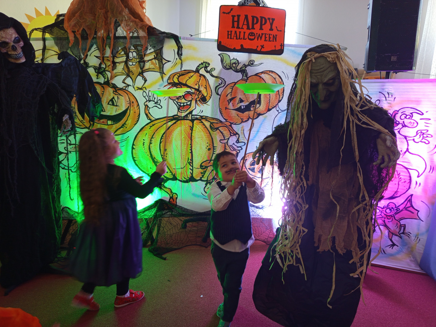 Ve středu 22. 10. jsme s dětmi prožili zábavné dopoledne s klaunem Hopsalínem, který za námi přijel s Halloweenským programem. Hned po svačince na nás čekal čaroděj spolu s čarodějnicemi dole v herně, která byla vyzdobená na Halloweenskou párty. Děti celé dopoledne tančily Halloweenské tanečky a hrály zábavné hry a soutěže jako třeba nošení dýničky na ruce kostlivce kolem čarodějnice. Všichni nakonec dostali zaslouženou odměnu v podobě Halloweenských sladkostí a barevného balónku od Hopsalína.