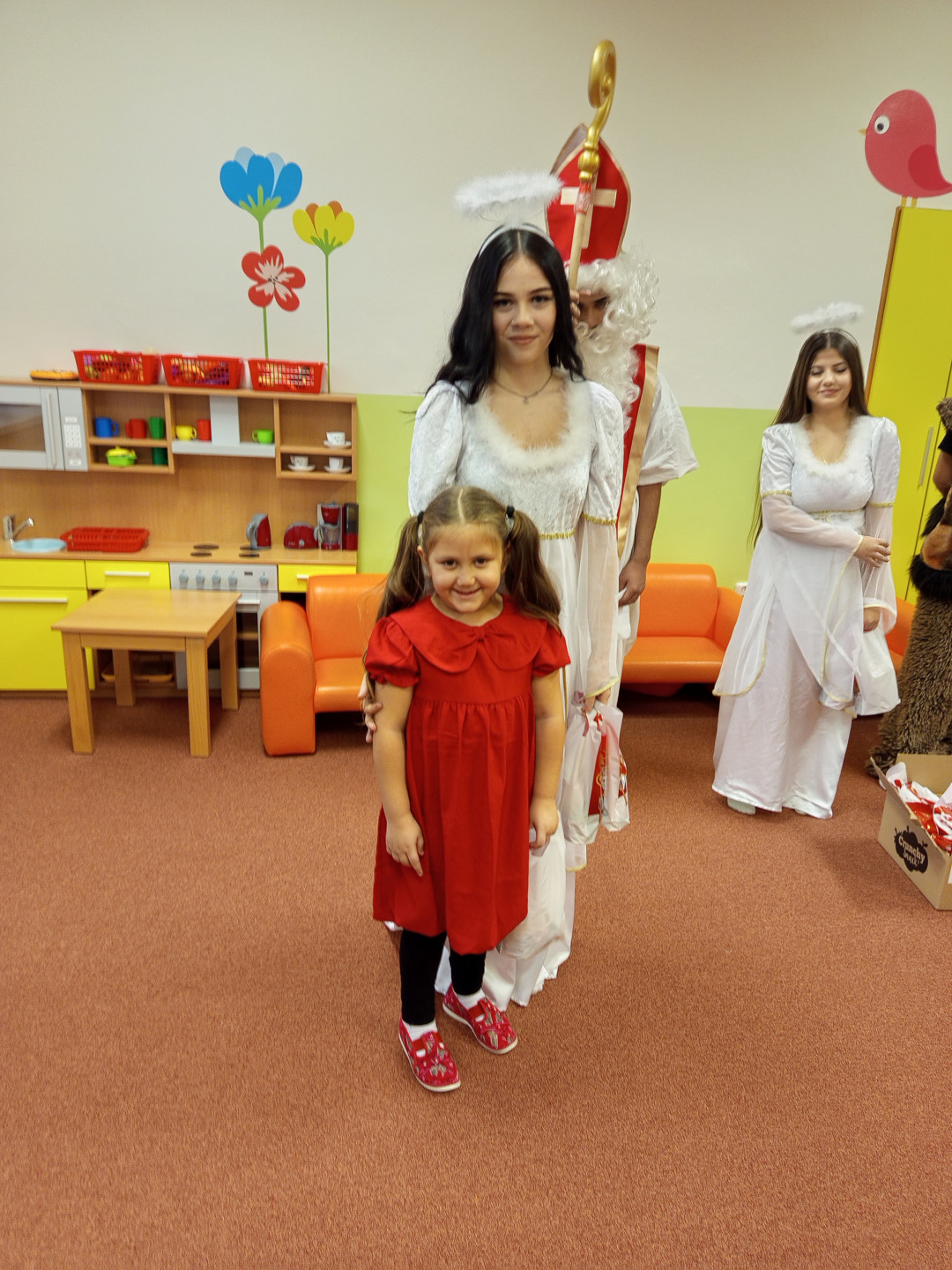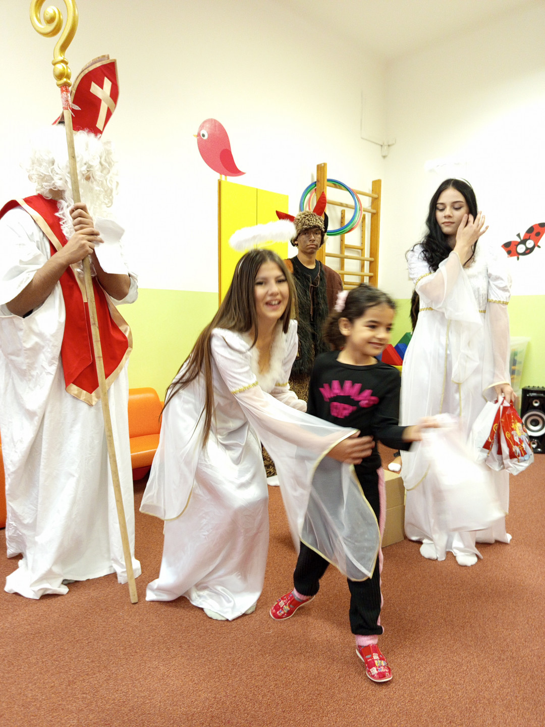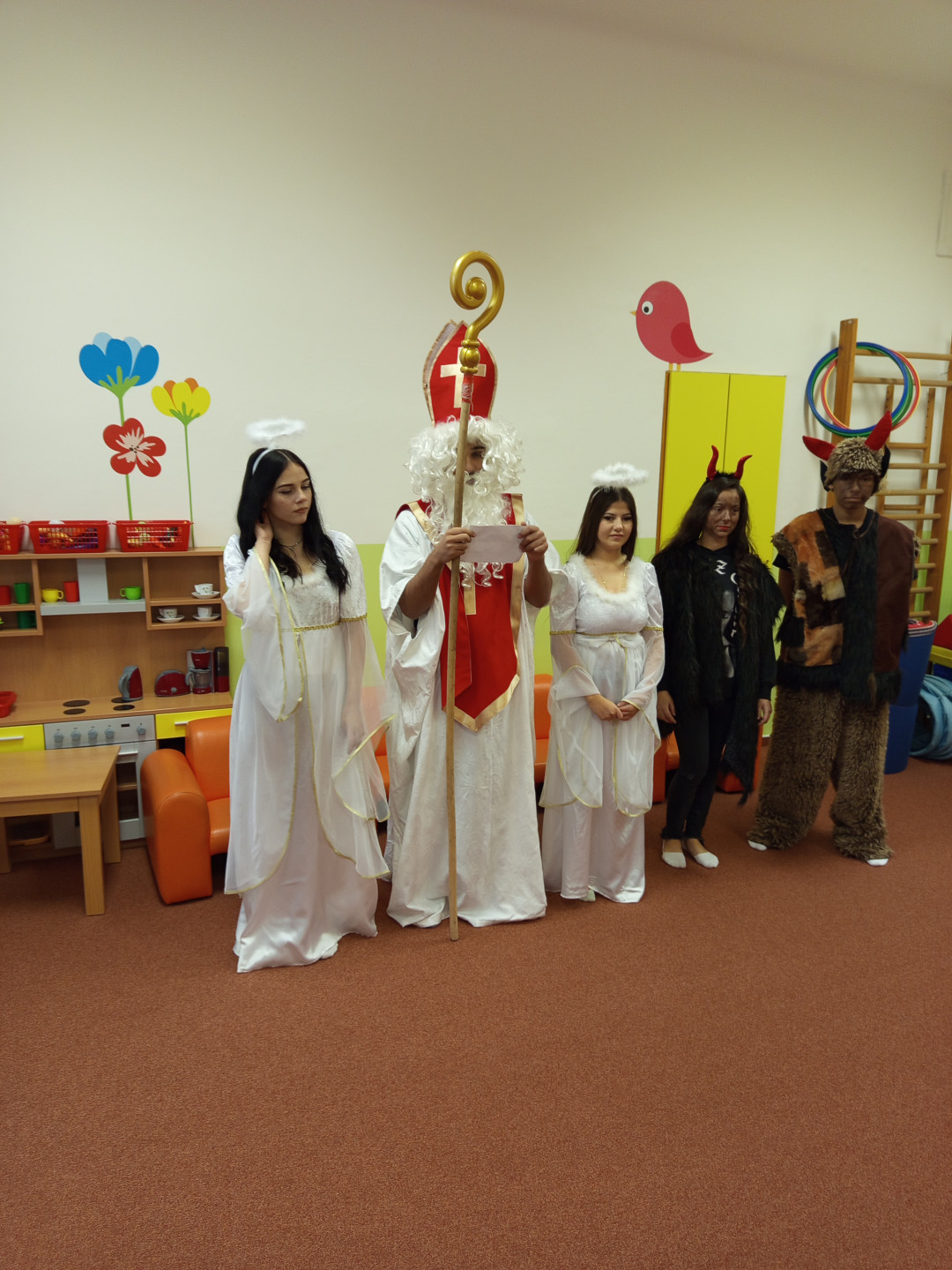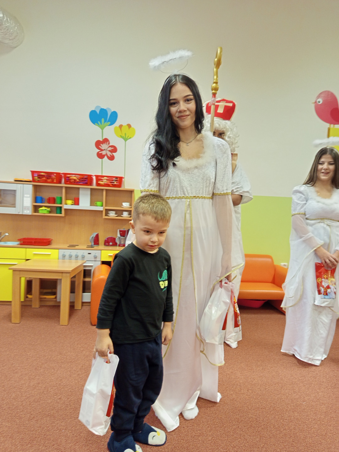 V pátek 5. 12. 2025 za dětmi zavítala Mikulášská družina ze ZŠ Pěší. Děti přednesly Mikulášovi básničku a písničku a na oplátku jim Mikuláš spolu s anděly rozdal bohaté mikulášské balíčky s ovocem a sladkostmi. A protože součástí družiny byli také čerti, děti si užily také pořádné čertoviny.