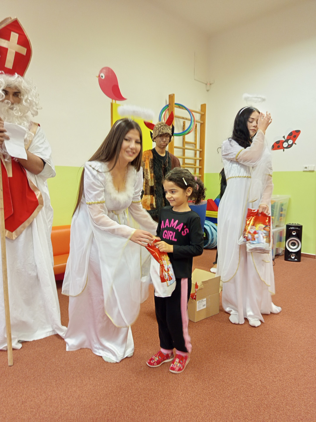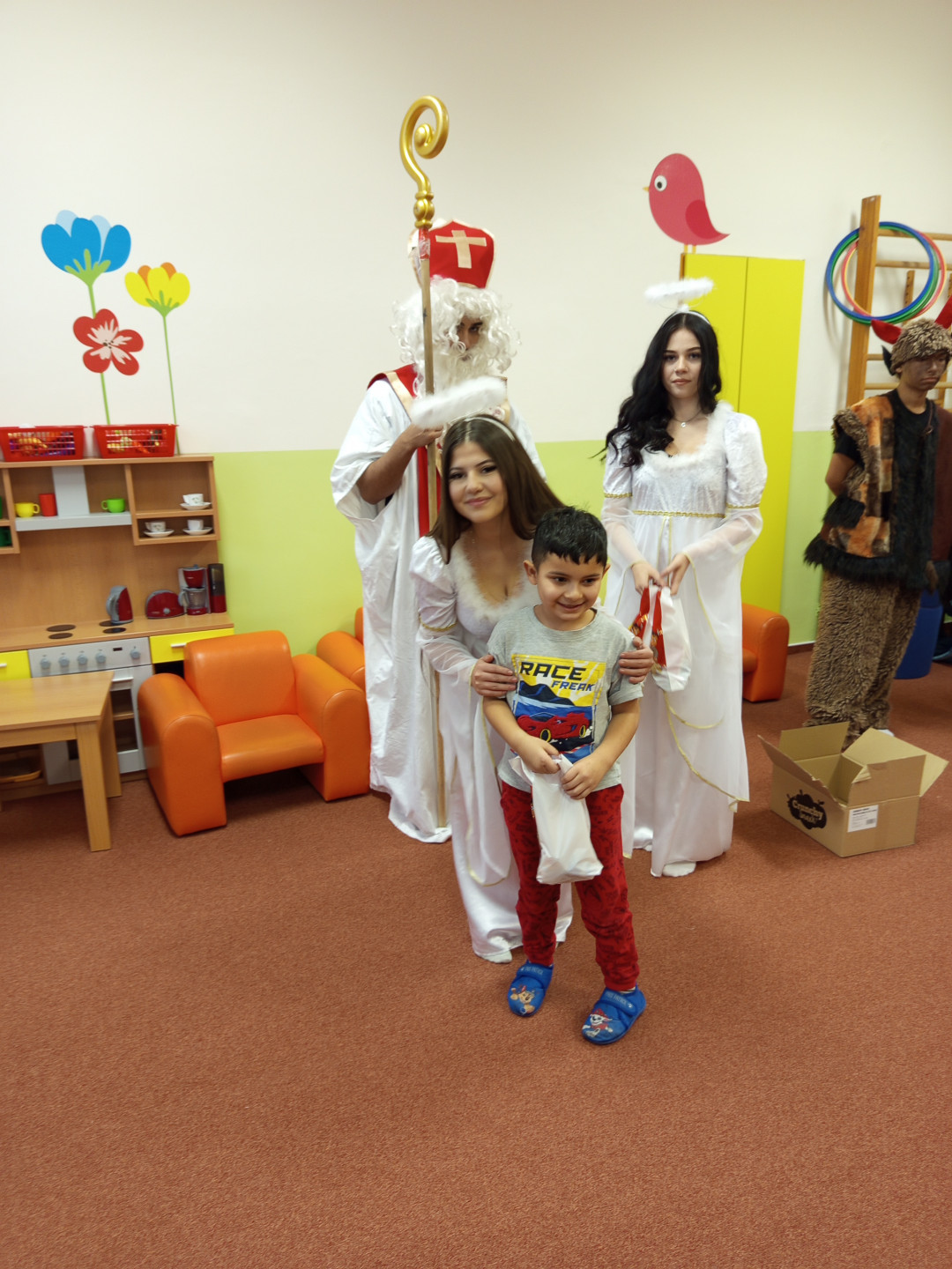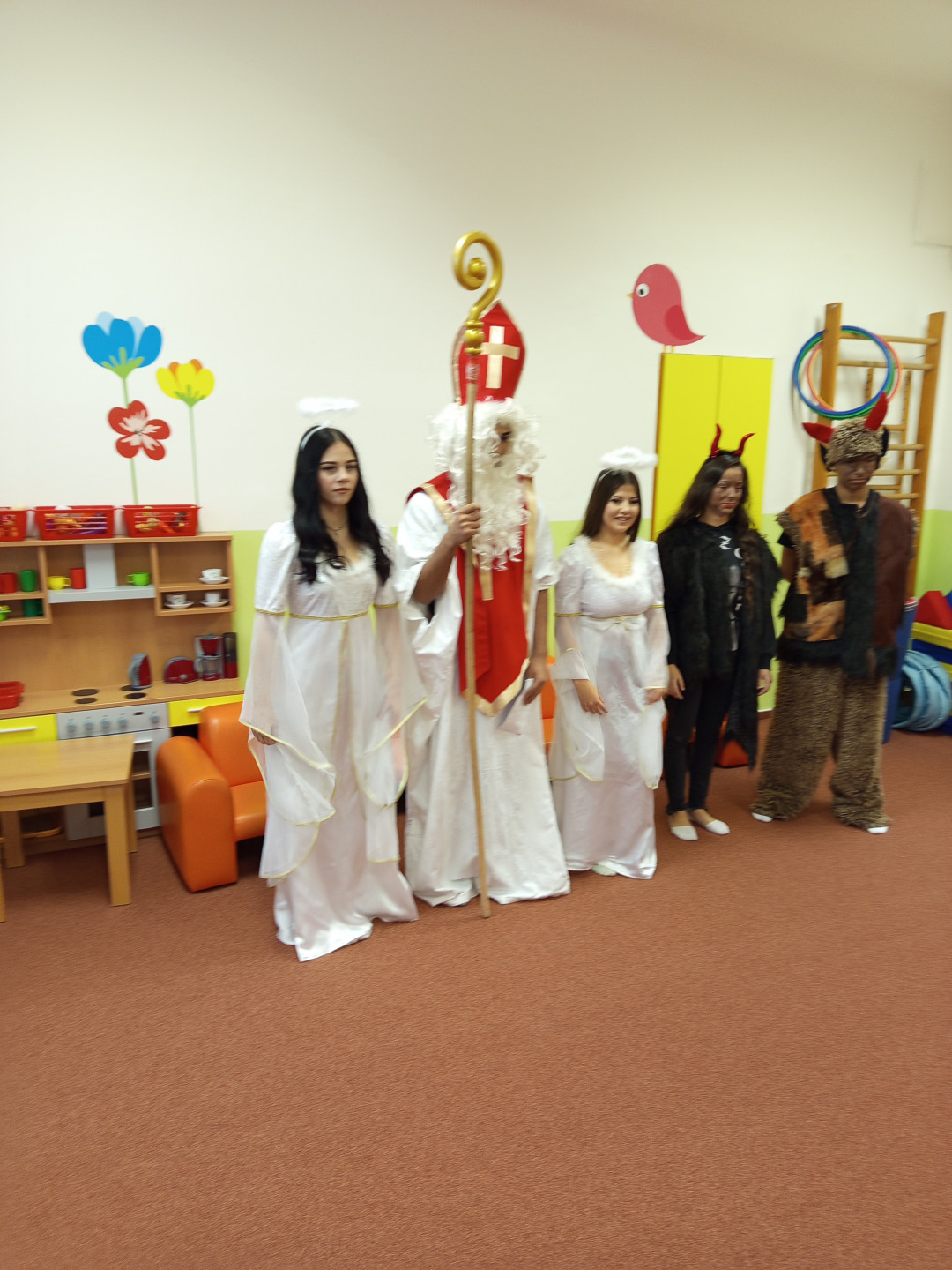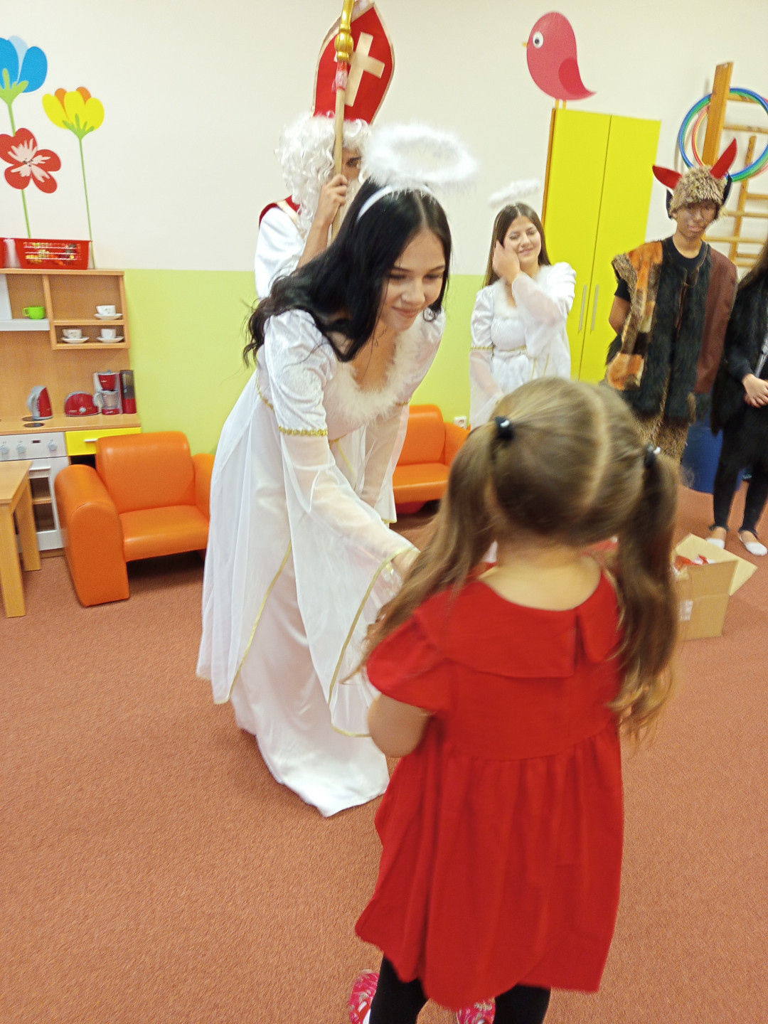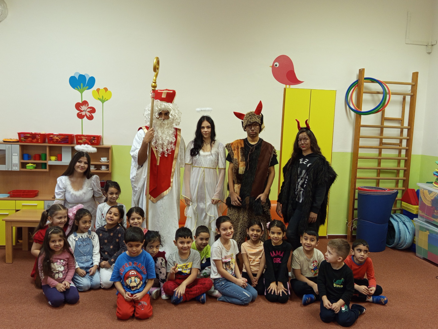V pátek 5. 12. 2025 za dětmi zavítala Mikulášská družina ze ZŠ Pěší. Děti přednesly Mikulášovi básničku a písničku a na oplátku jim Mikuláš spolu s anděly rozdal bohaté mikulášské balíčky s ovocem a sladkostmi. A protože součástí družiny byli také čerti, děti si užily také pořádné čertoviny.