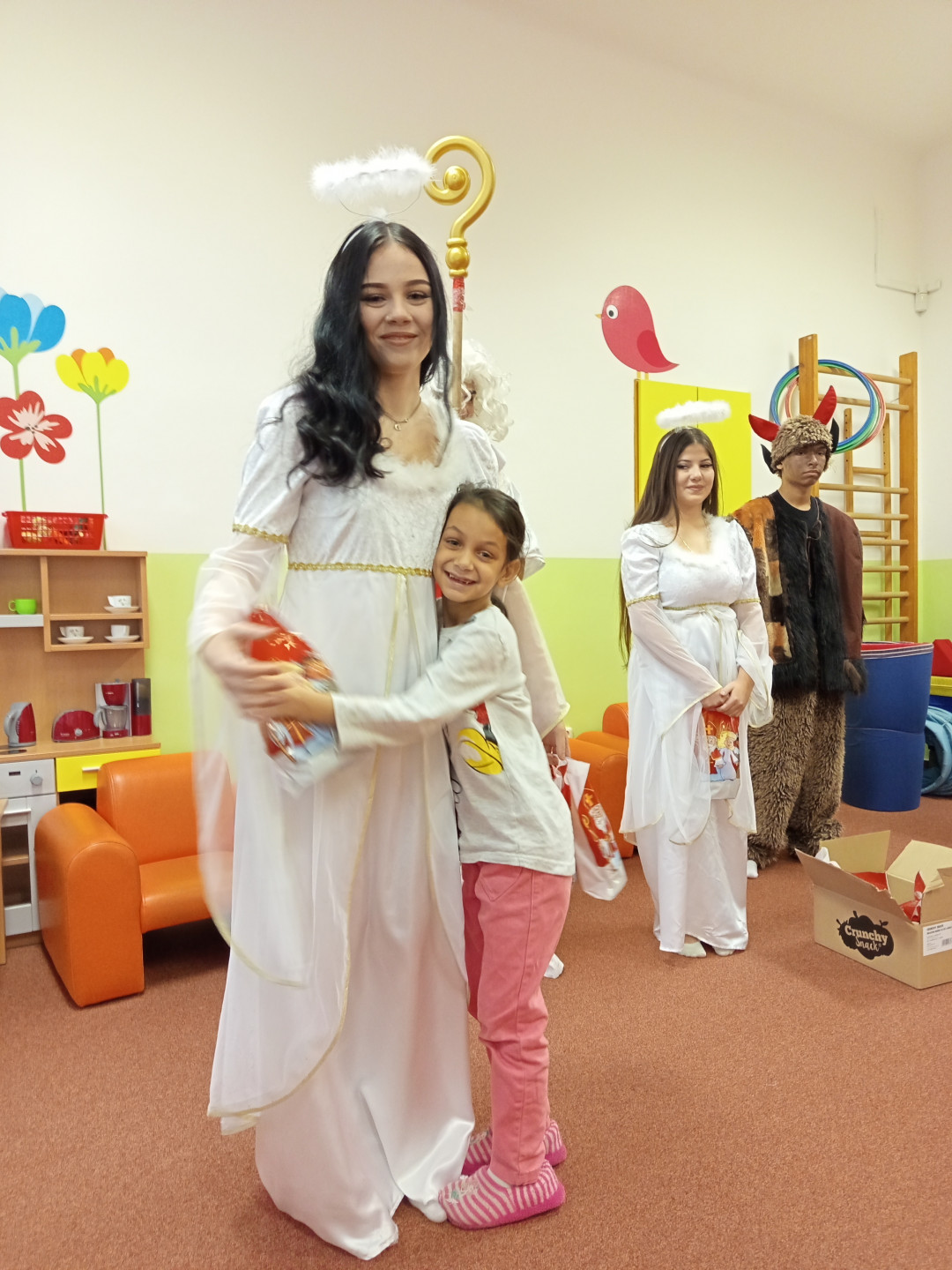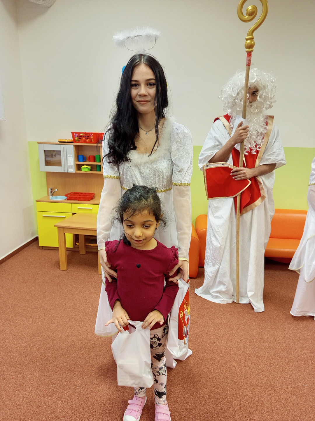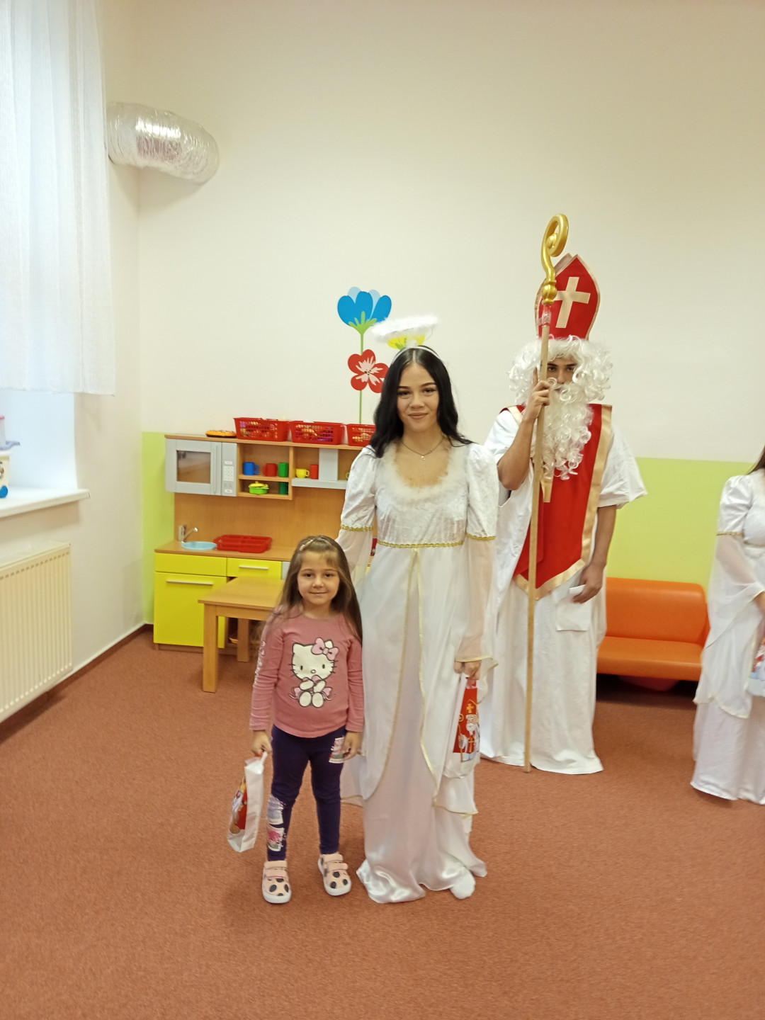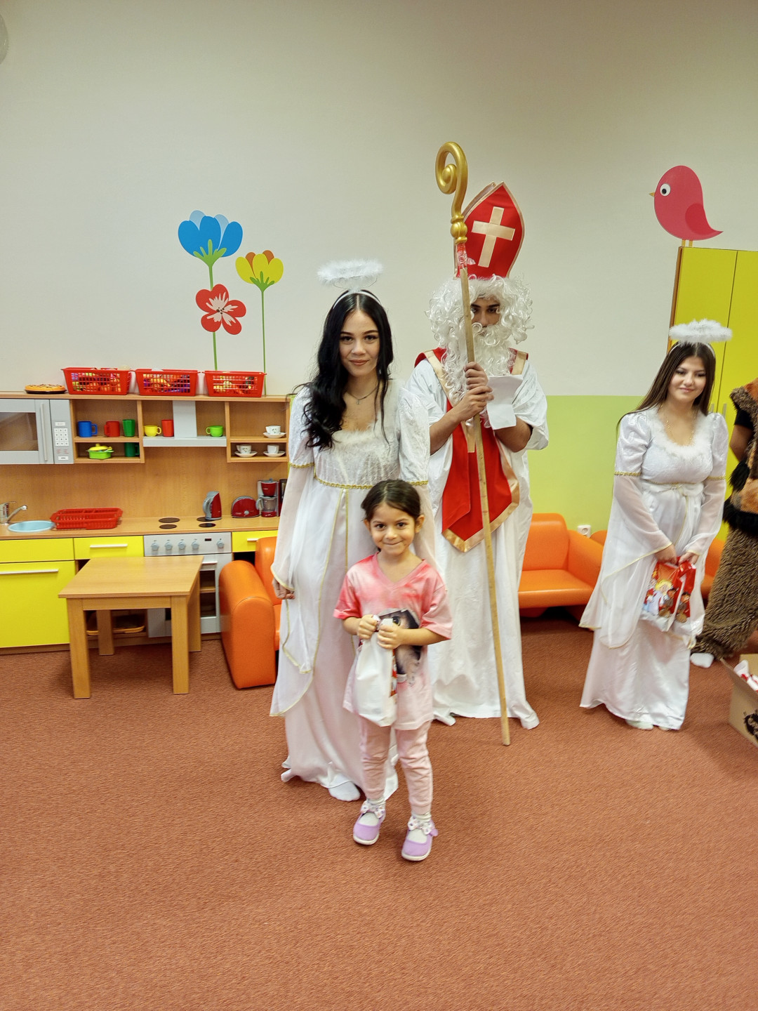 V pátek 5. 12. 2025 za dětmi zavítala Mikulášská družina ze ZŠ Pěší. Děti přednesly Mikulášovi básničku a písničku a na oplátku jim Mikuláš spolu s anděly rozdal bohaté mikulášské balíčky s ovocem a sladkostmi. A protože součástí družiny byli také čerti, děti si užily také pořádné čertoviny.
