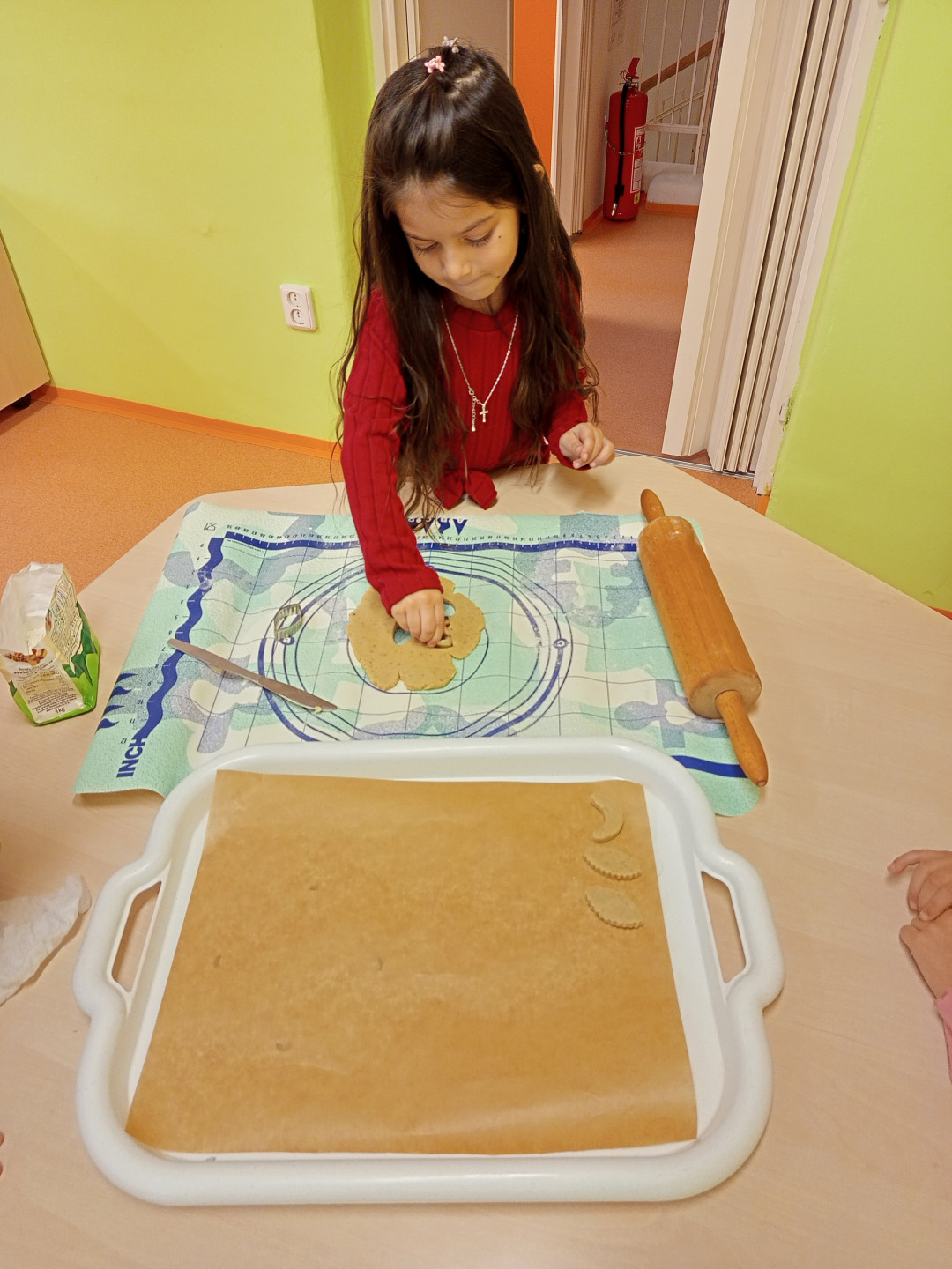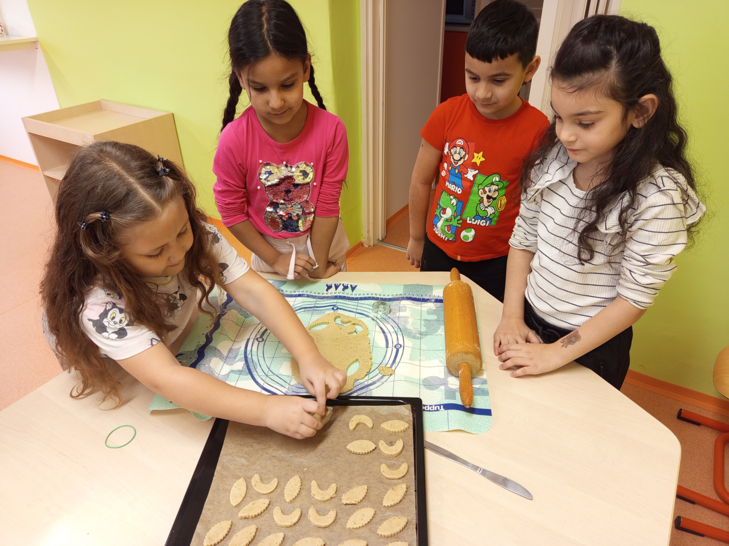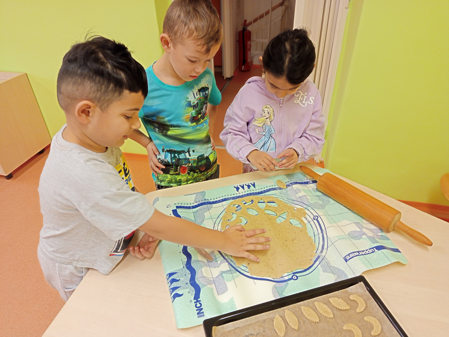 V pondělí 8.12.2025 jsme si s dětmi vyzkoušeli upéct vánoční linecké cukroví. Děti se zapojily do vykrajování těsta formičkami. Vykrojené tvary si potom děti ukládaly na plech. Upečené cukroví nám zpříjemní vánoční posezení v příštím týdnu.