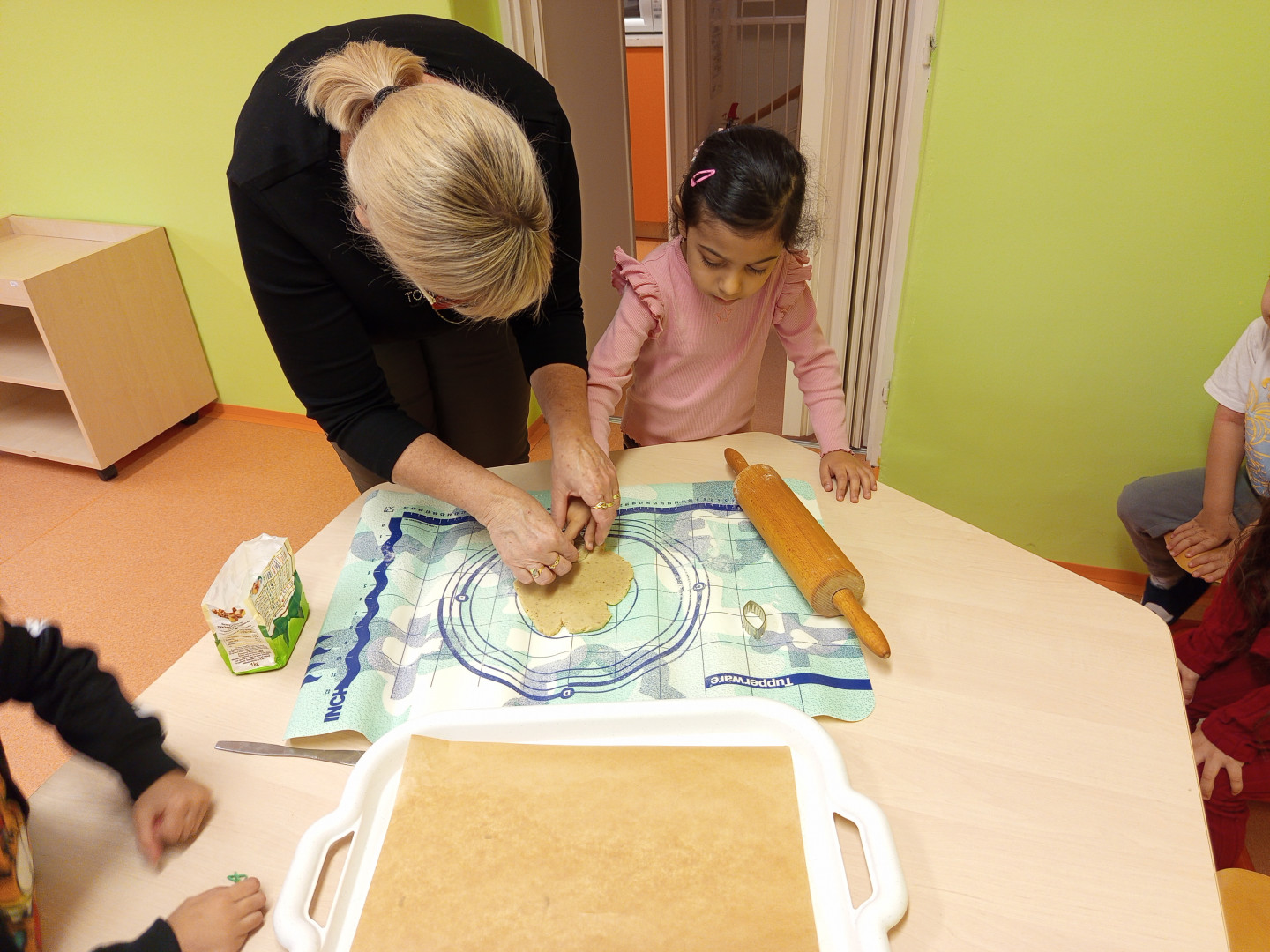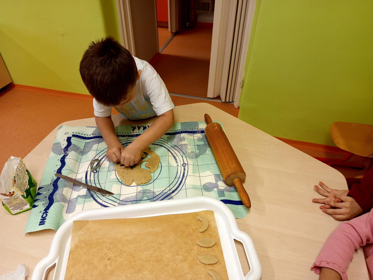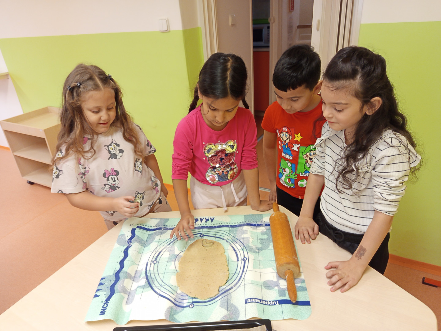 V pondělí 8.12.2025 jsme si s dětmi vyzkoušeli upéct vánoční linecké cukroví. Děti se zapojily do vykrajování těsta formičkami. Vykrojené tvary si potom děti ukládaly na plech. Upečené cukroví nám zpříjemní vánoční posezení v příštím týdnu.