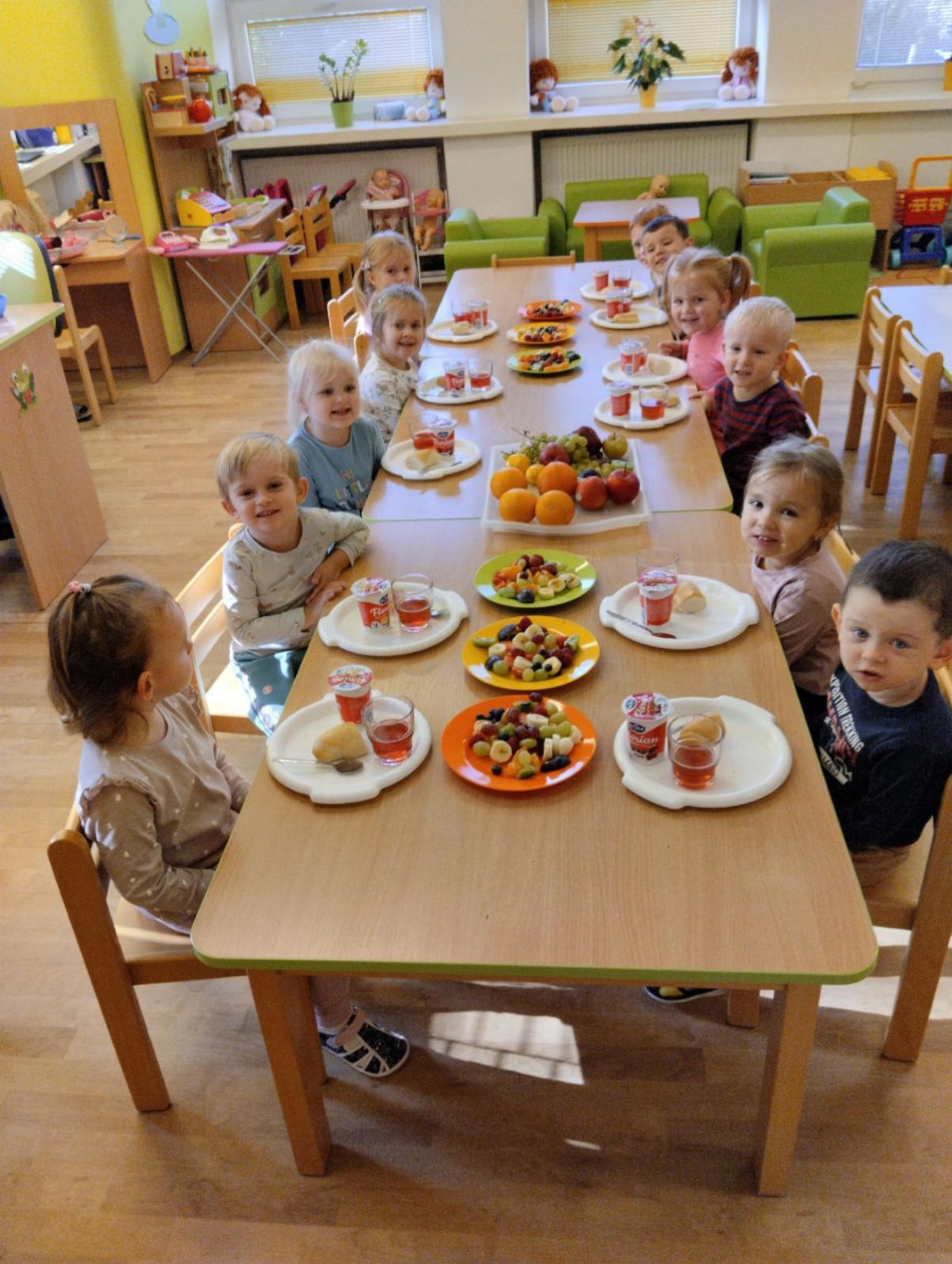 Děti ze třídy Žabiček, si v rámci vzdělávání na téma „Poznáváme ovoce“, připravily pro své mlsné jazýčky bohatý ovocný salát.