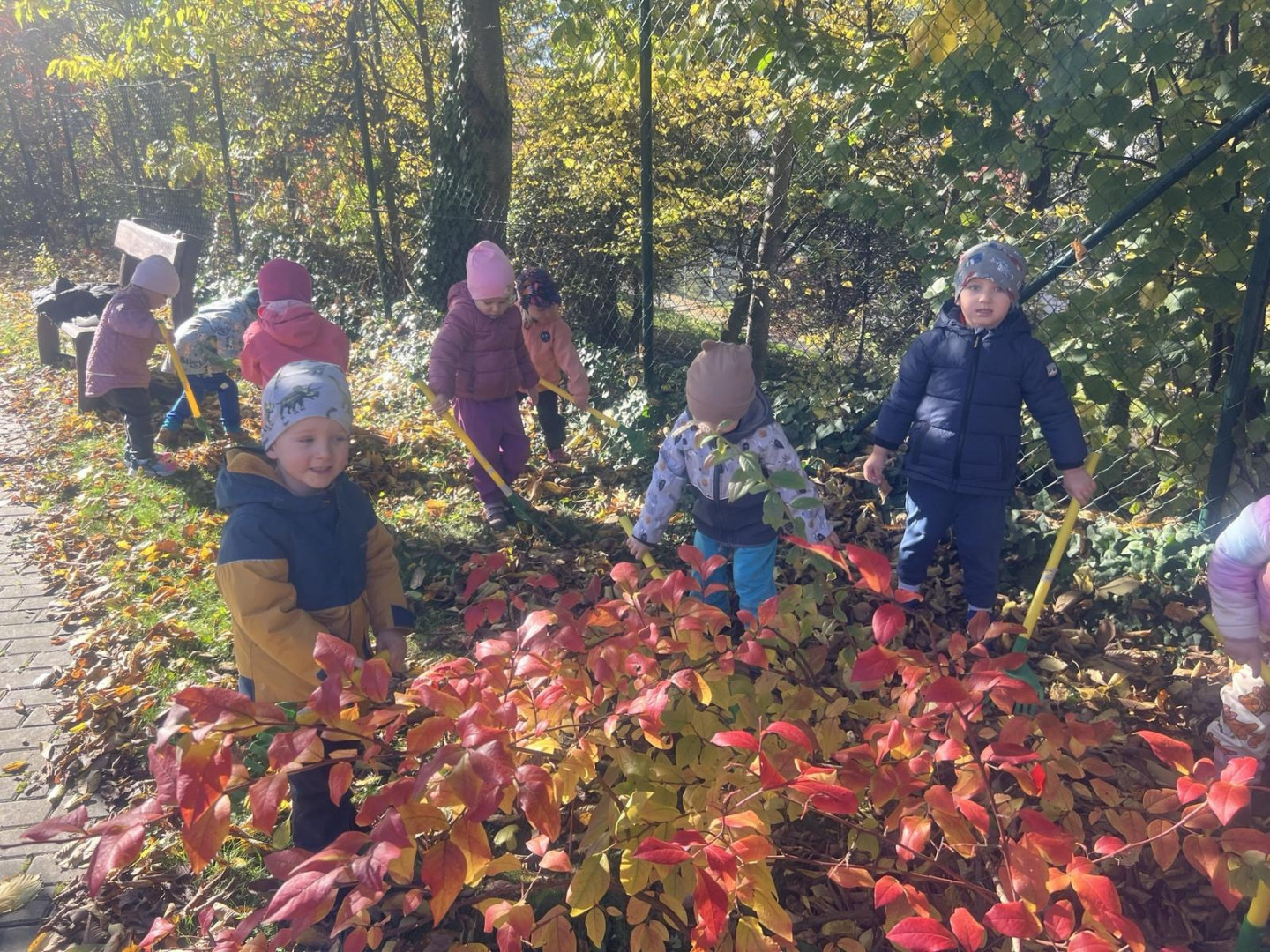 Naše nejmladší děti ze třídy Žabiček přidaly své malé ručky k dílu a pomohly s úklidem podzimního listí na školní zahradě.